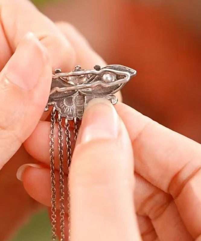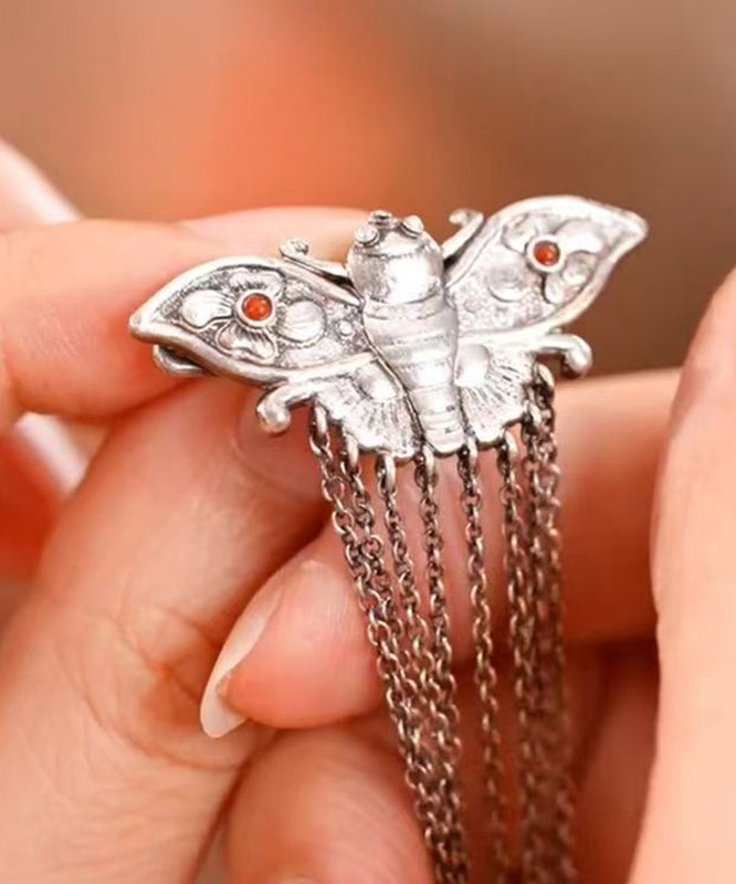 Vintage Silk Sterling Silver Butterfly Tassel Hairpin