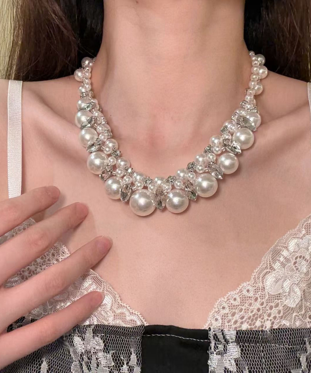 Bohemian White Alloy Zircon Pearl Beading Collar Necklace