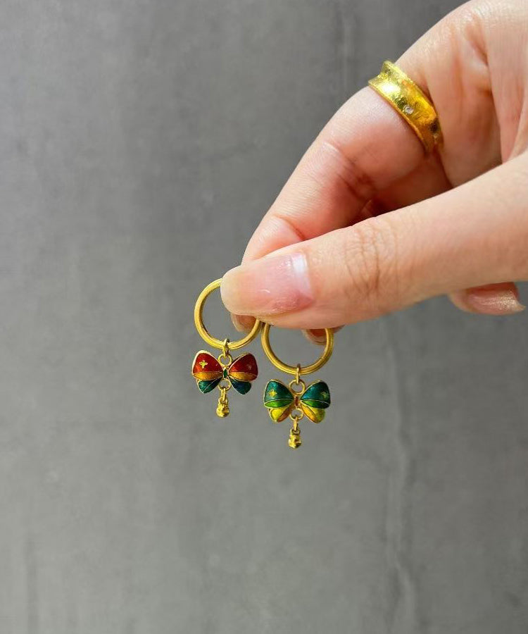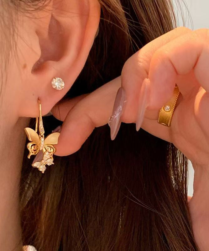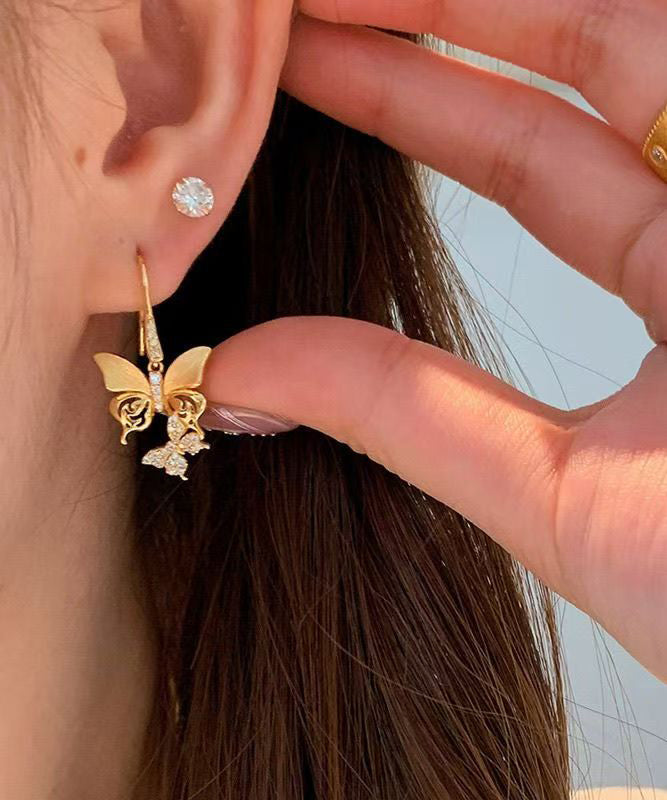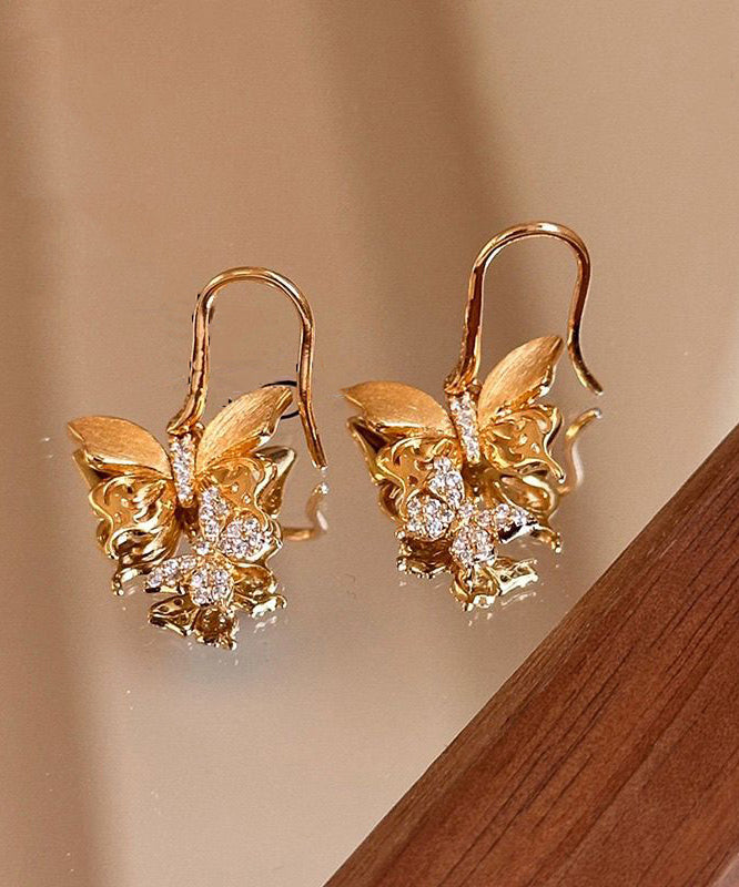 Fine Gold Copper Overgild Zircon Butterfly Hoop Earrings