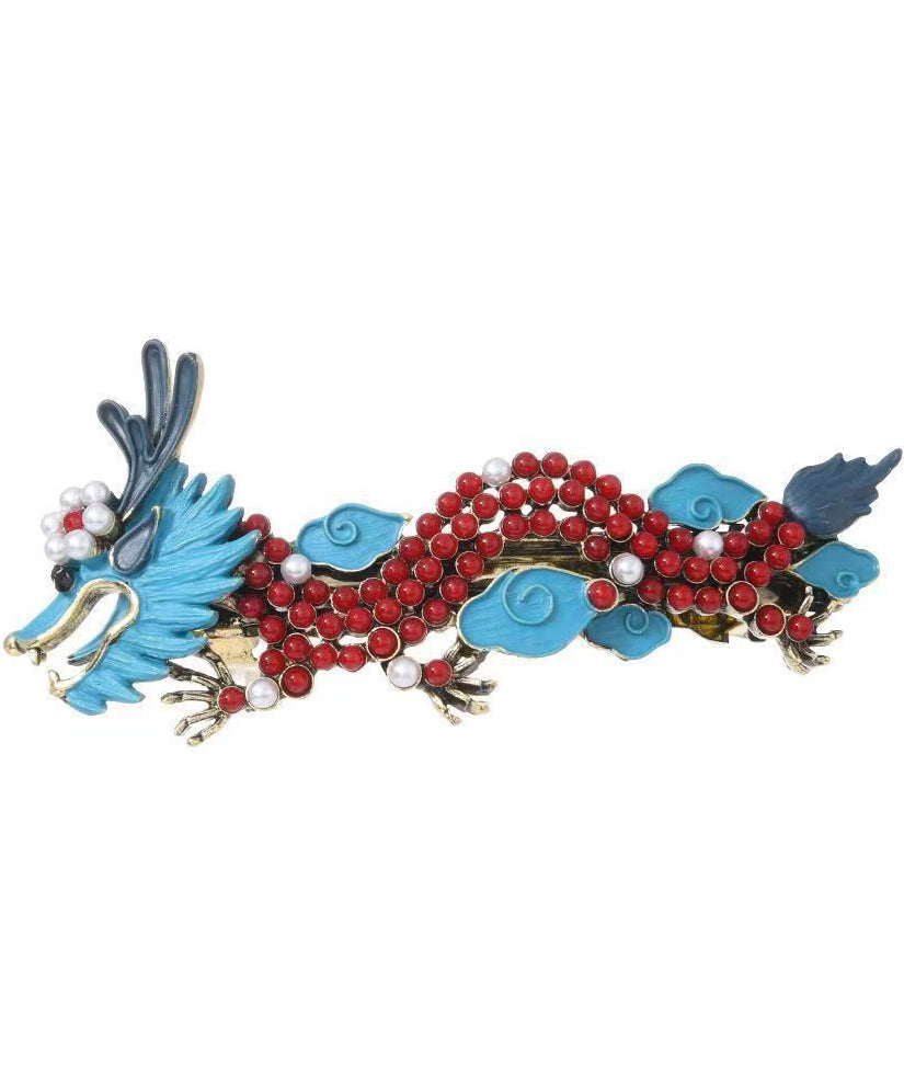 Vintage Colorblock Alloy Cloisonne Pearl Chinese Loong Hairpin