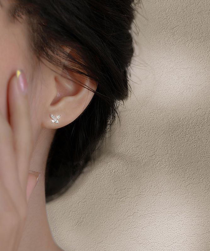 Fine Silk Stergild Silver Zircon Butterfly Stud Earrings