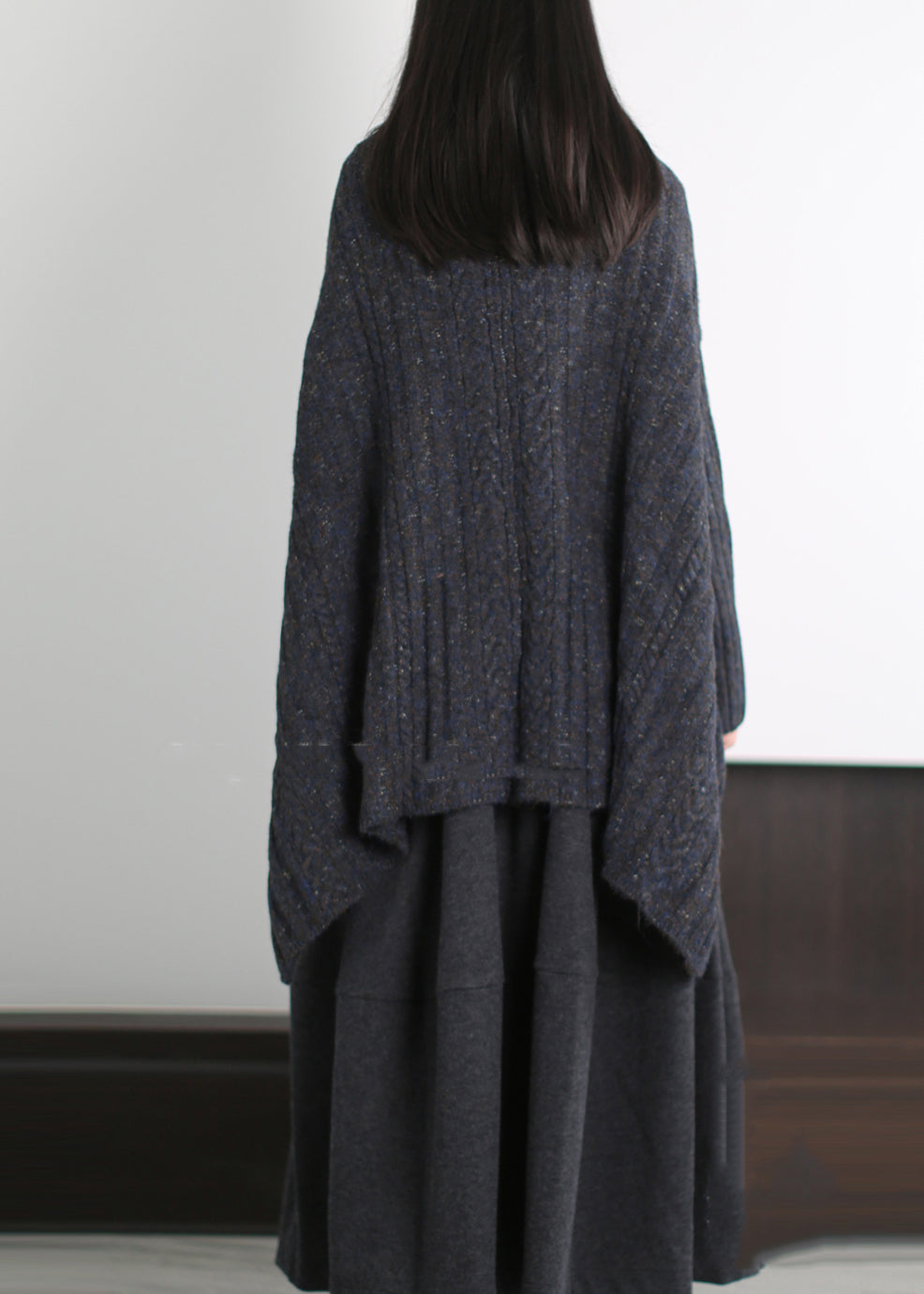 French Grey Turtle Neck Low High Design Knitted Tops Winter