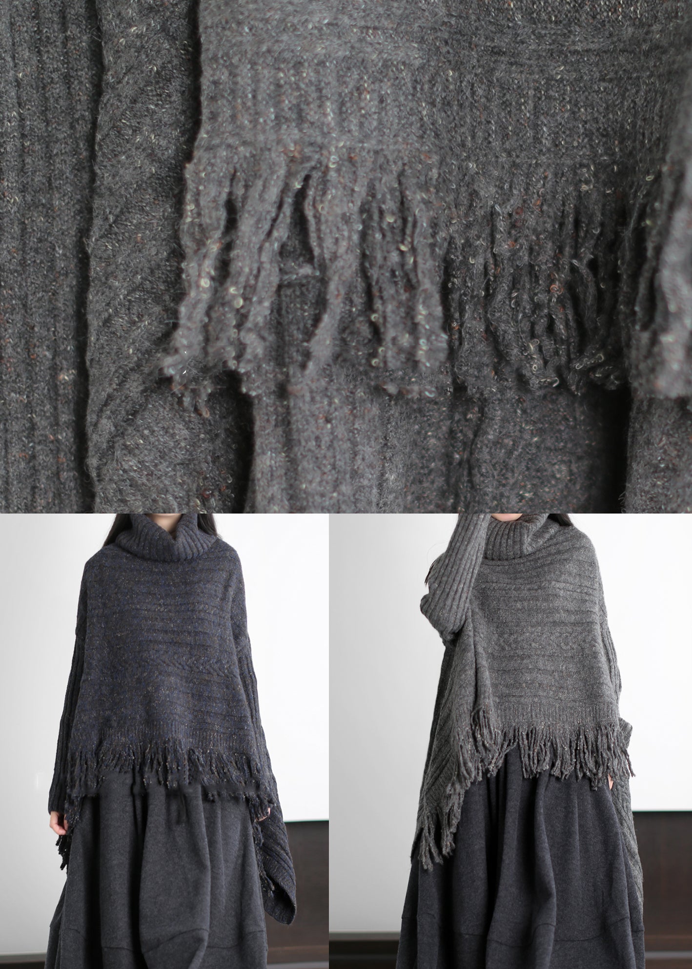 Art Black Asymmetrical Tasseled Knit Sweaters Winter