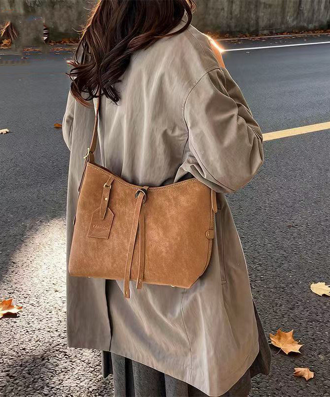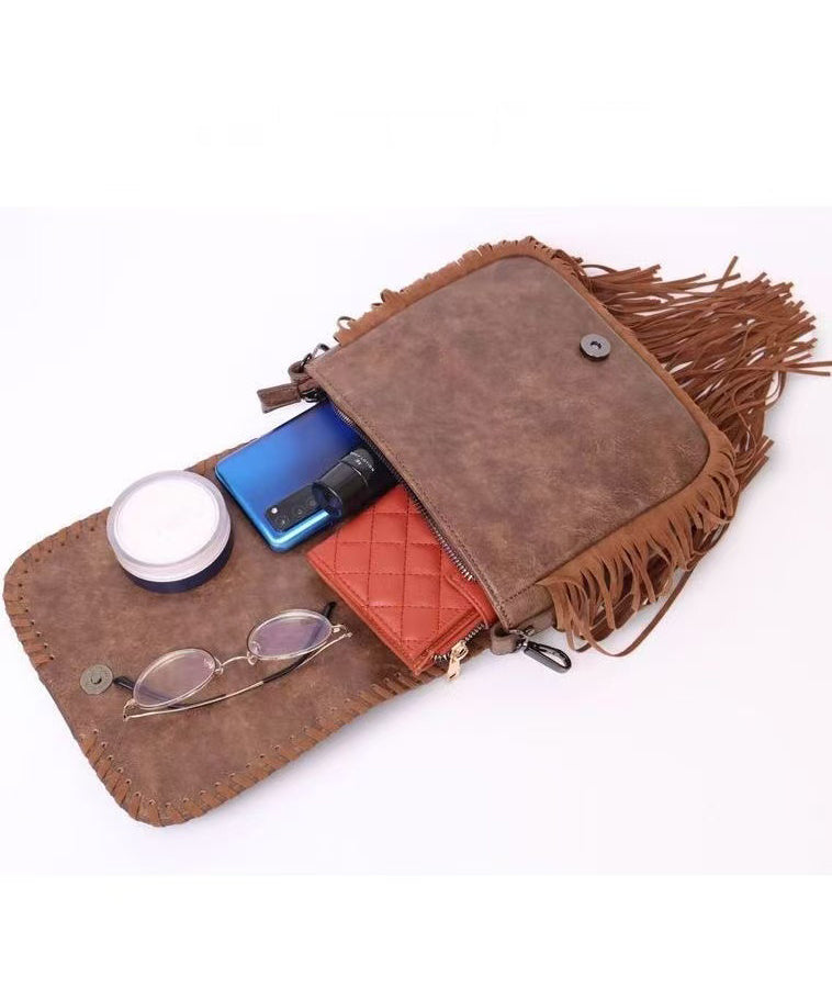 Fashion Brown Embossing Tasseled Faux Leather Messenger Bag