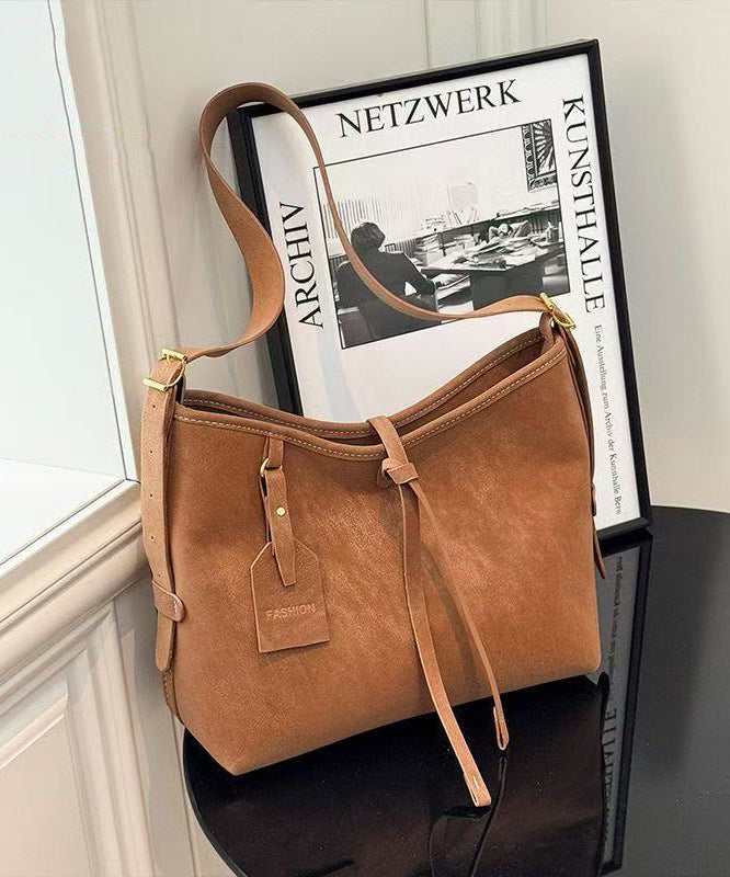 Chic Brown Appliqued Rivet Faux Leather Shoulder Bags
