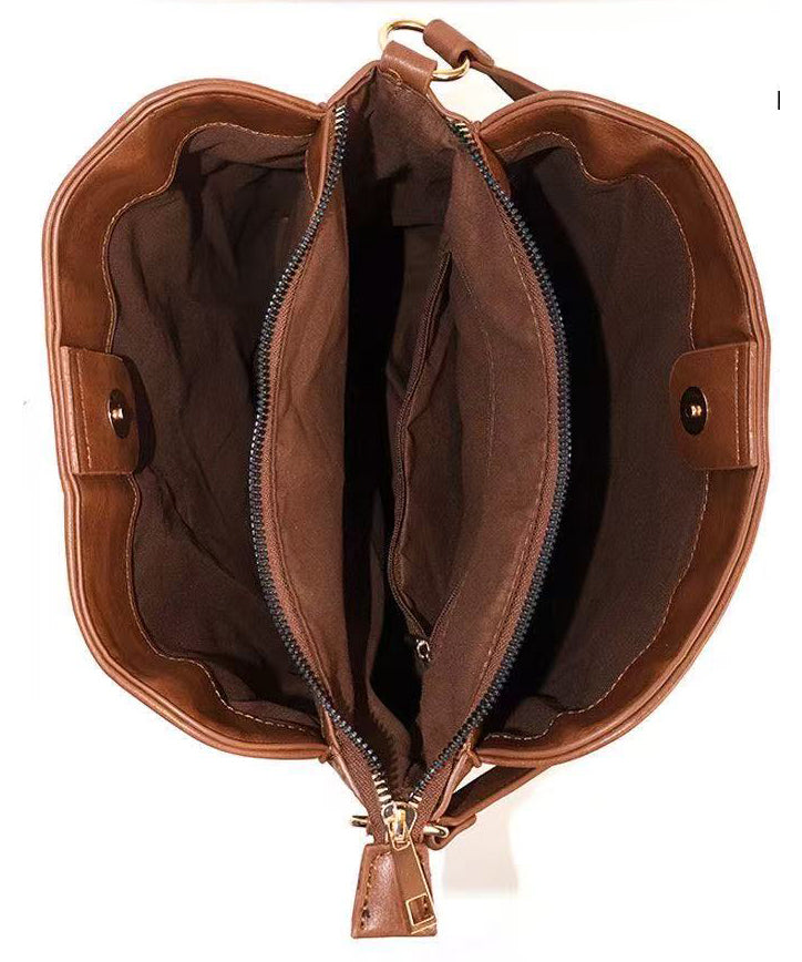 New Retro Brown Tie Dye Side Pockets Faux Leather Shoulder Handbag