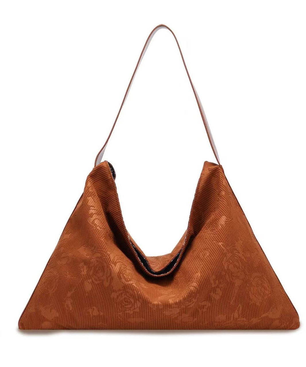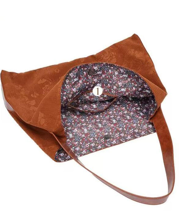 Fashion Brown Embroidered Inner Pocket Faux Leather Women Handbag