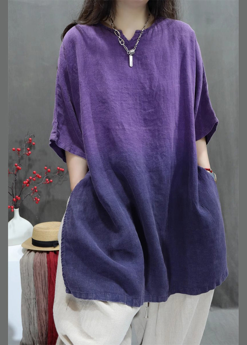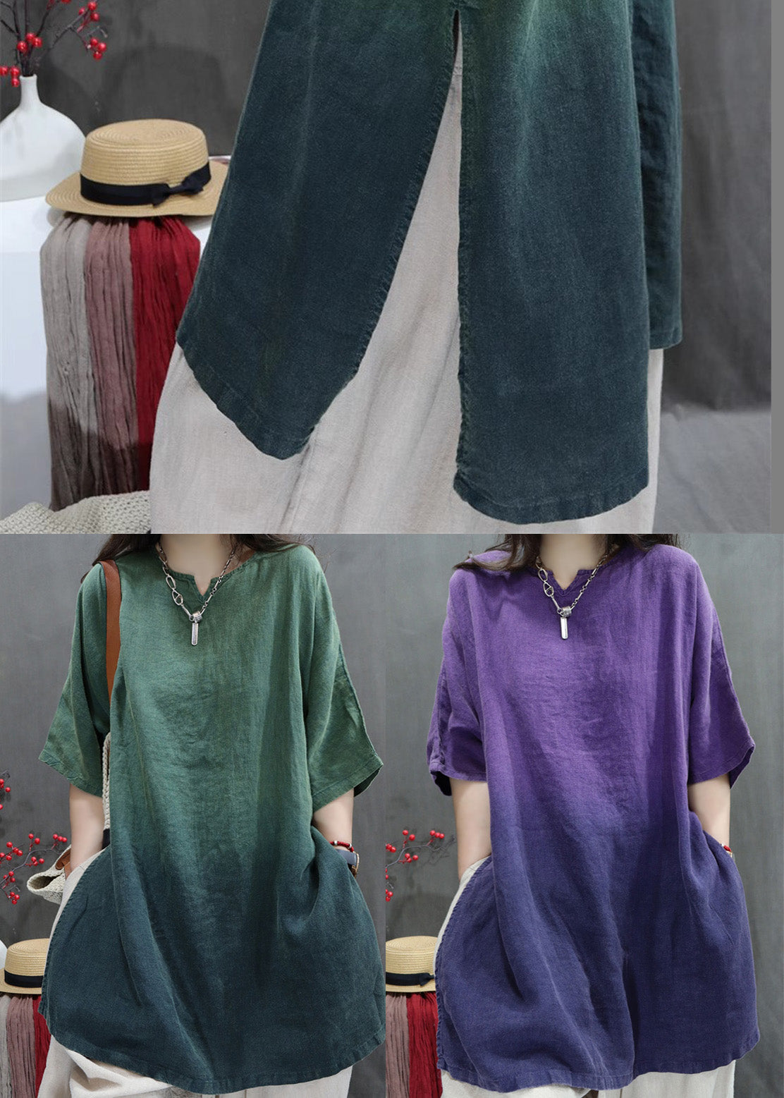 Gradient Green Linen Shirt Oversized Side Open Summer