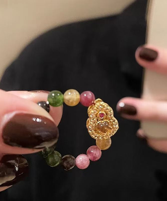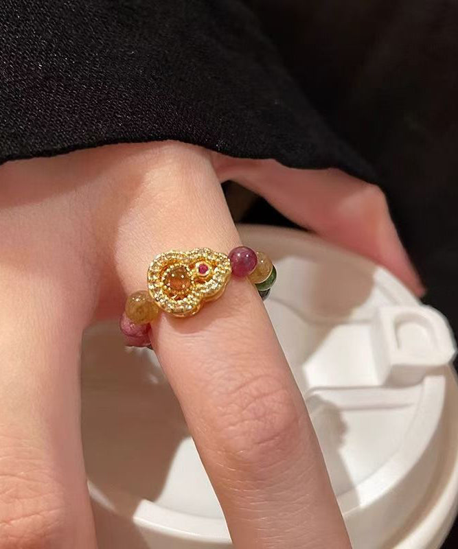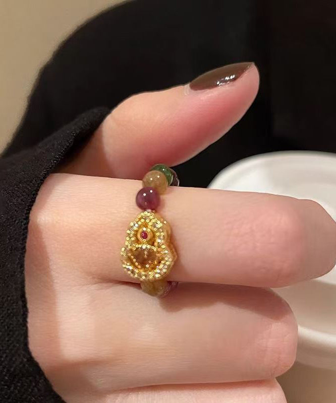 Art Rainbow Sterling Silver Overgild Calabash Beading Rings