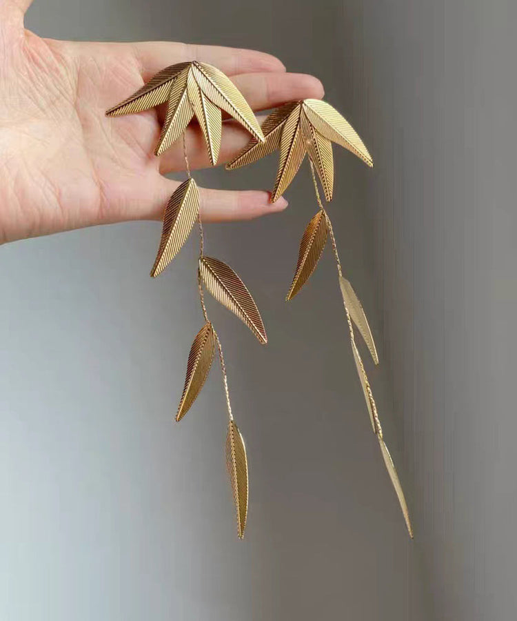 Boutique Gold Copper Overgild Bamboo Leaf Tassel Drop Earrings