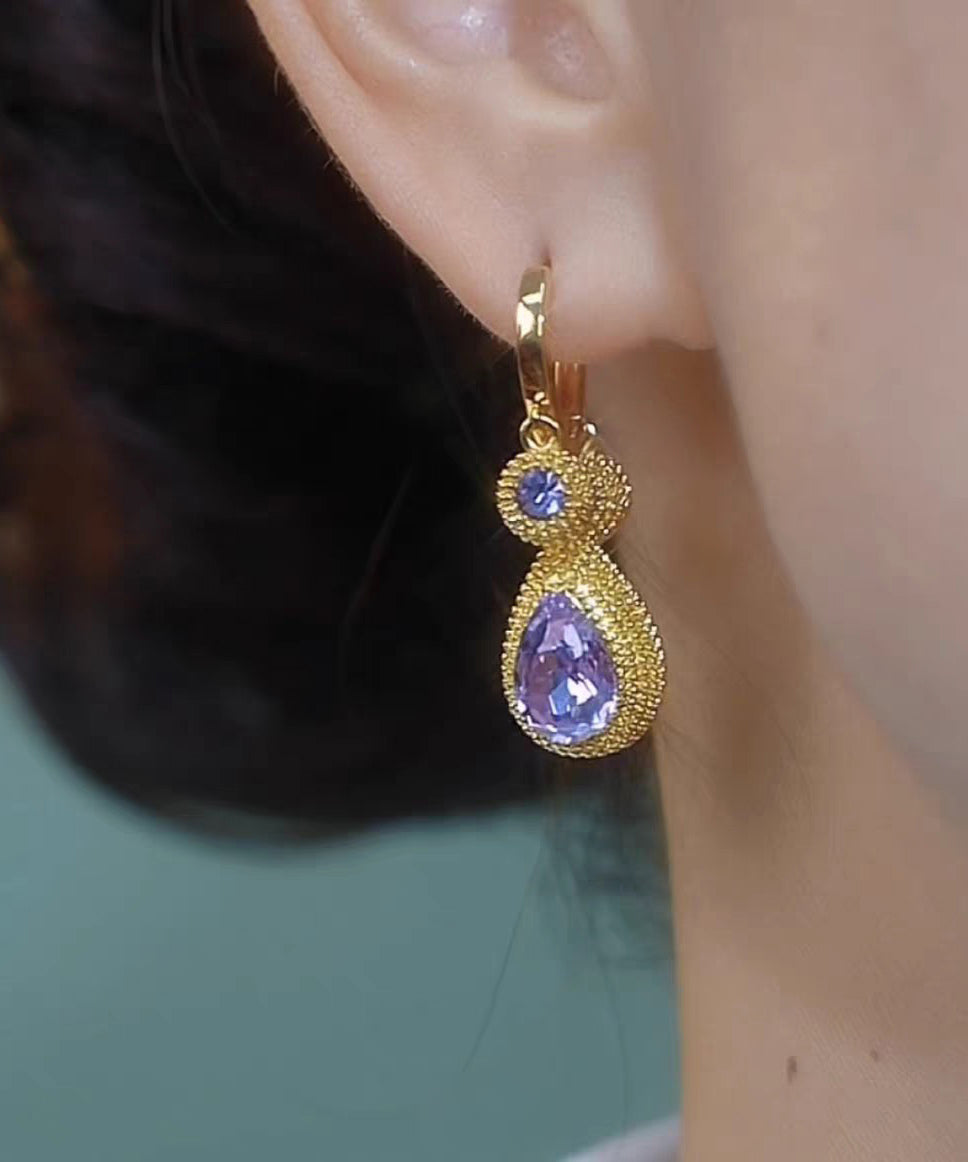 Fine Purple Copper Alloy Zircon Crystal Pomegranate Water Droplet Drop Earrings