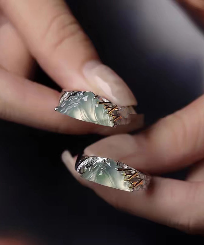 Stylish Mountains And Rivers Jade Silver Couple's Rings