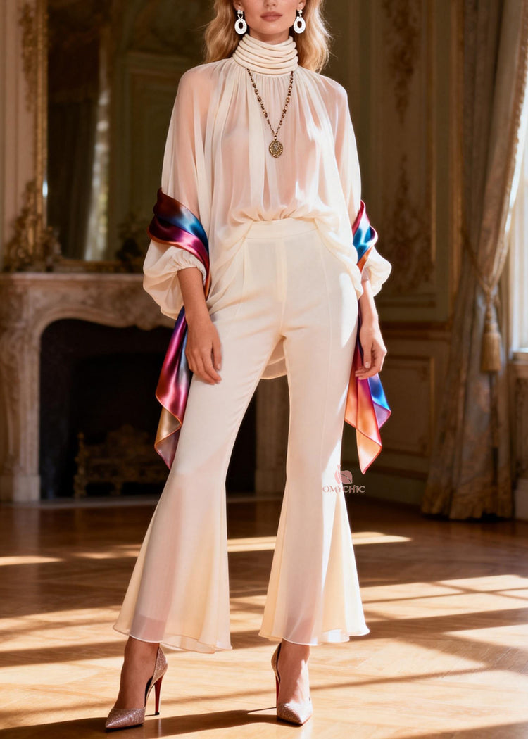 Chic Hign Neck Patchwork Silk Women Sets 2 Pieces Spring