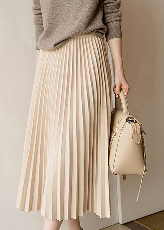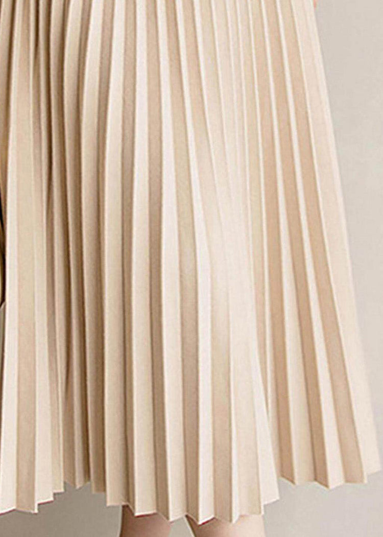 Elegant Apricot Elastic Waist Pleated Skirt Spring