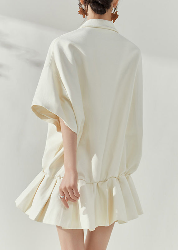 Cute White Peter Pan Collar Tie Lace Mid Dresses Short Sleeve