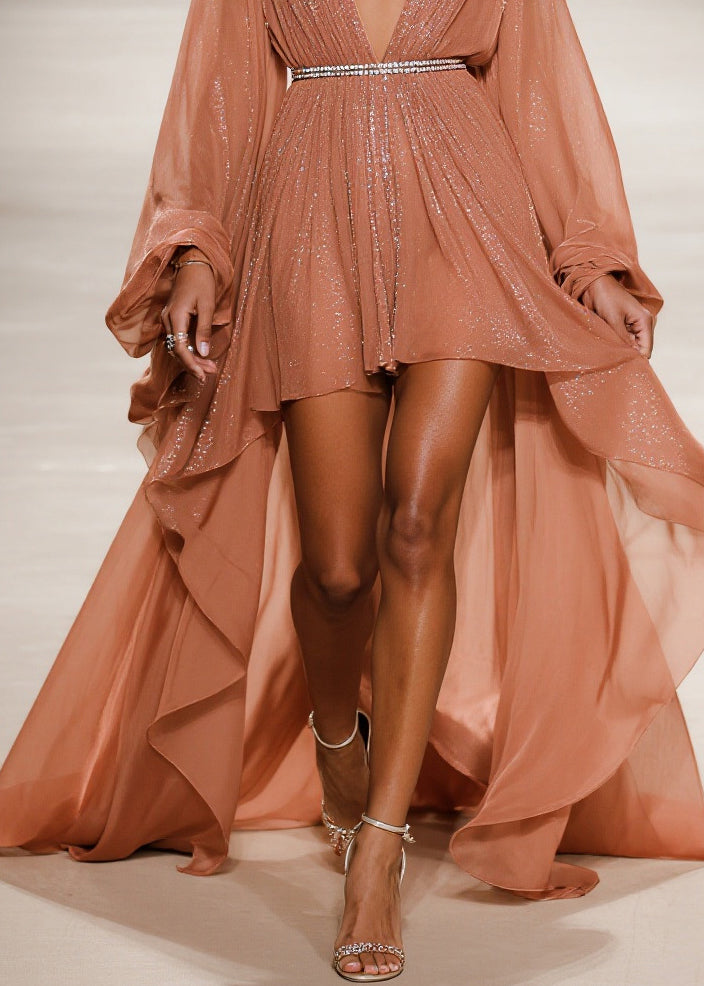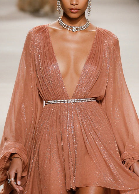 French Khaki Sequins Exra Large Hem Tulle Dress Cardigans Summer