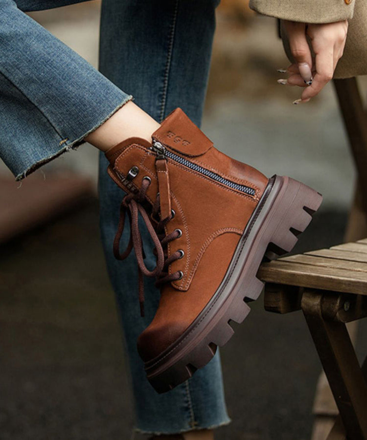 Yellow Lace Up Splicing Platform Boots Fuzzy Wool Lined