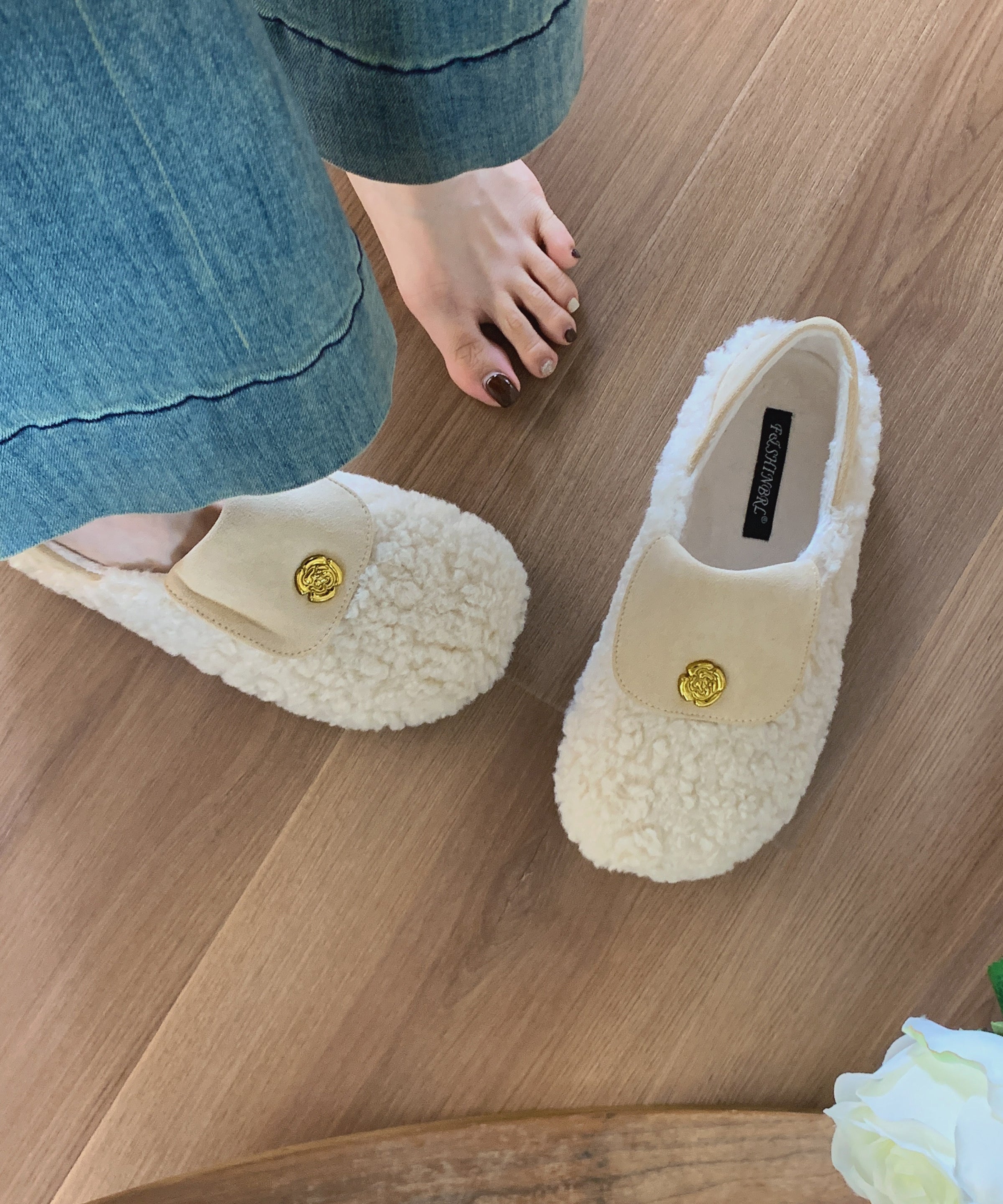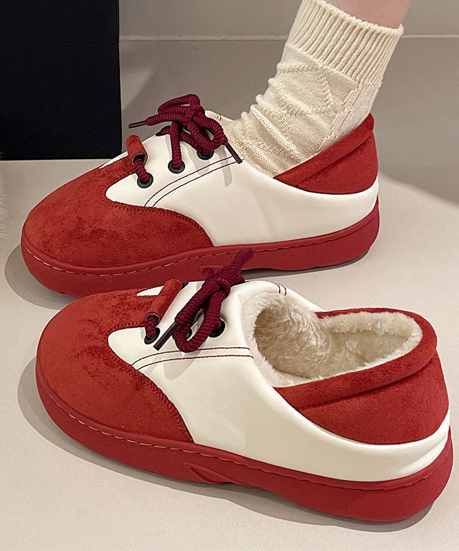 Red Suede Splicing Flat Feet Shoes Fuzzy Wool Lined