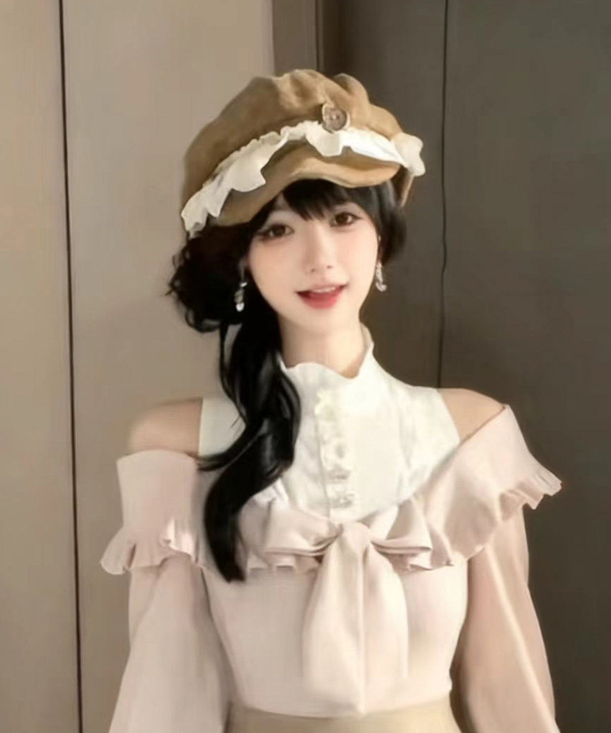 Japanese Khaki Lace Ruffled Octagonal Breton Hat
