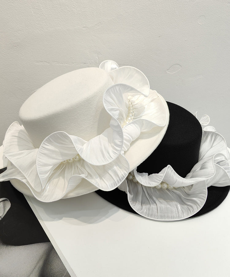 Original Design Black Ruffled Nail Bead Woolen Cloche Hat