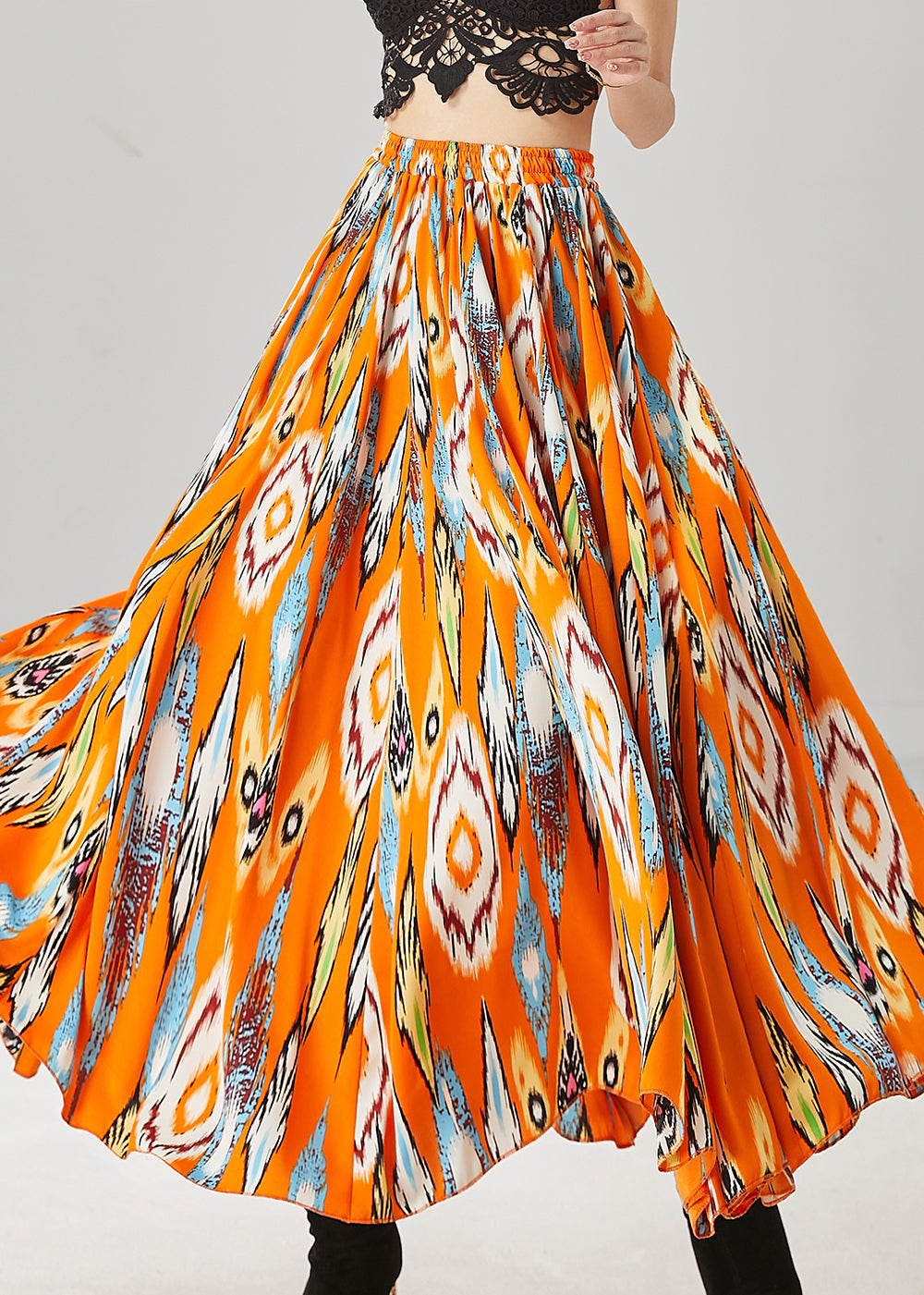 Plus Size Orange Elastic Waist Print Chiffon Skirt Spring