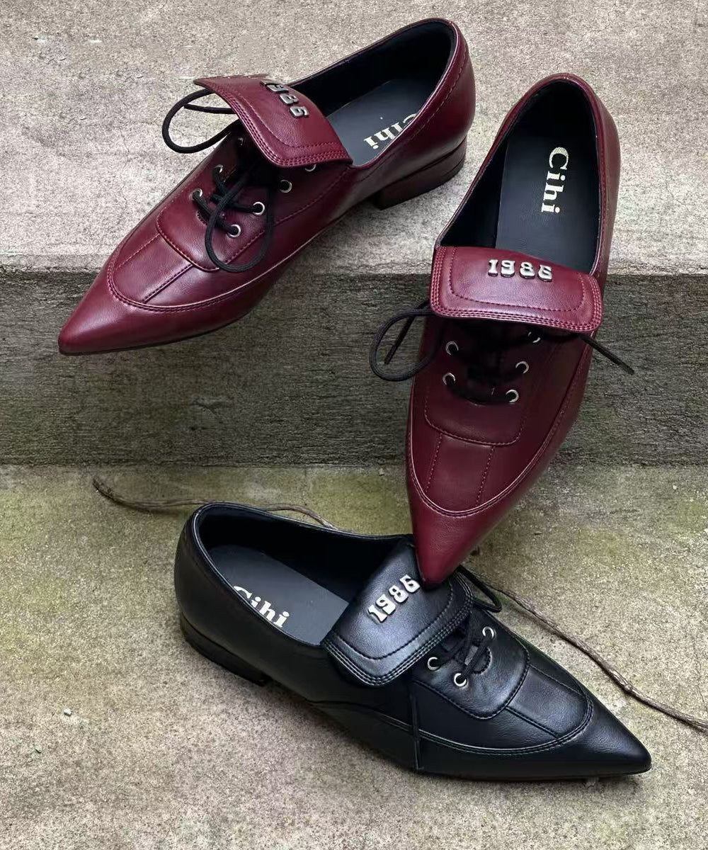 Black Faux Leather Chic Splicing Lace Up Pointed Toe Shoes