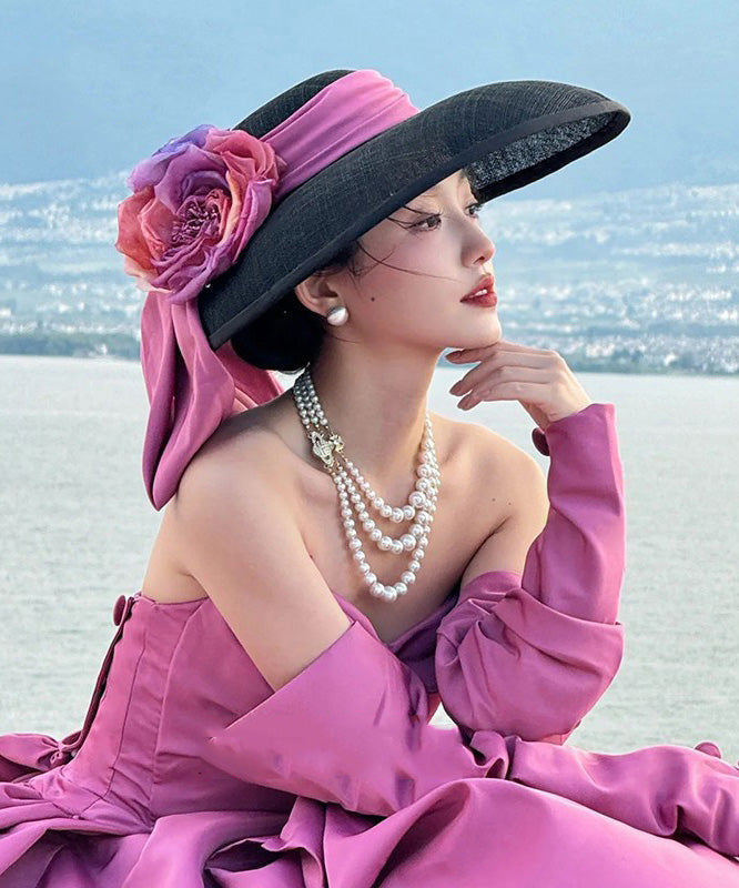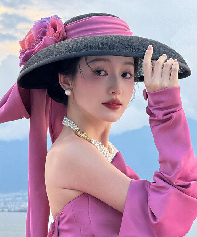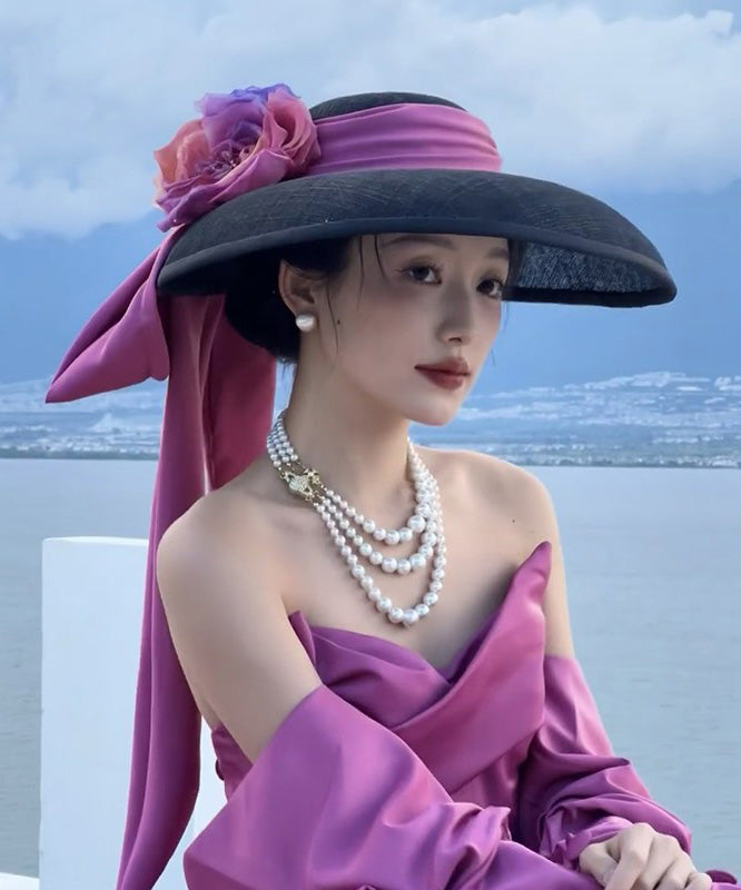 Black French Floral Bow Hat With A Large Brim
