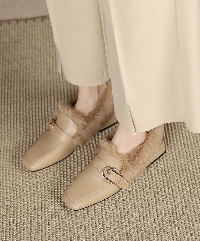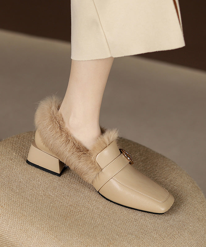 Black Fuzzy Wool Lined Splicing Cowhide Leather Chunky Loafers