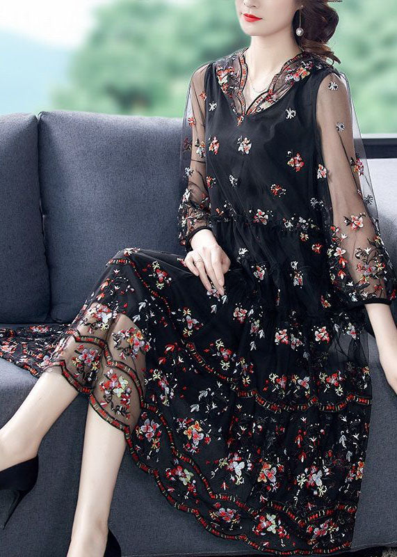 Black Hollow Out Tulle Dress Ruffled Exra Large Hem Summer