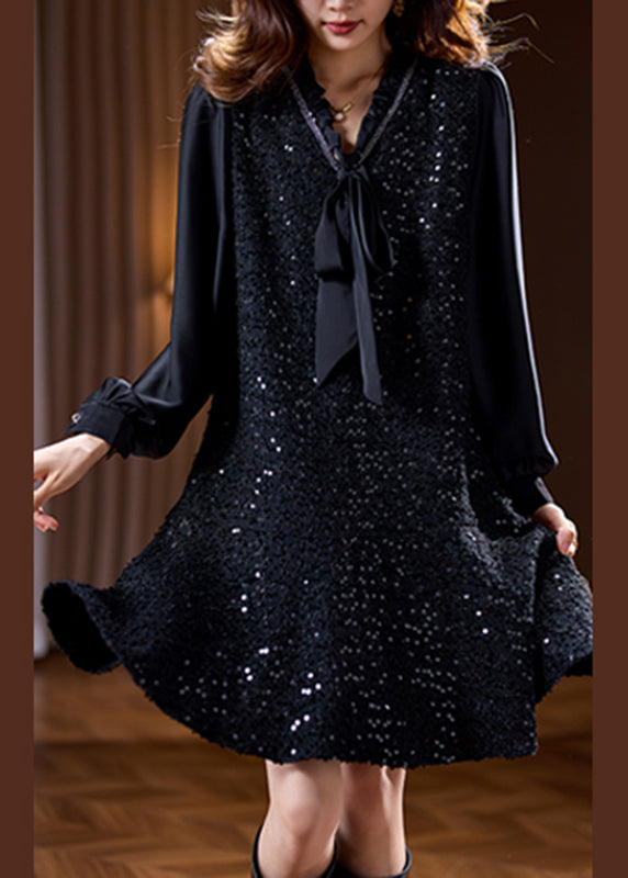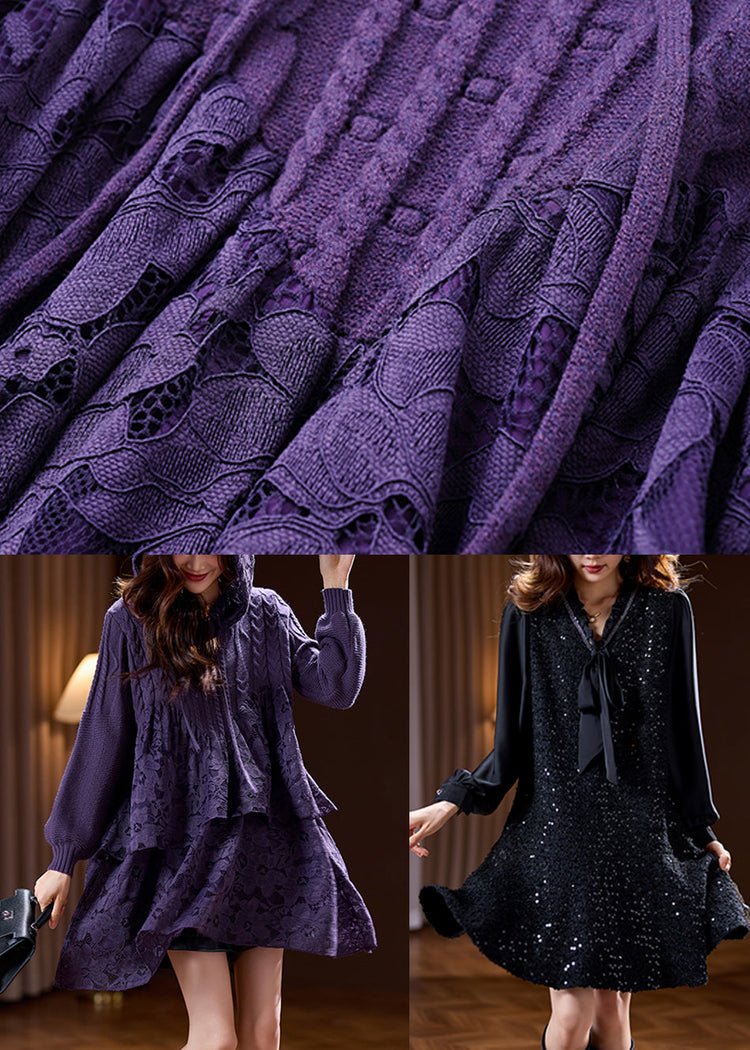 Black O-Neck Lace Hooded Mid Dress Spring