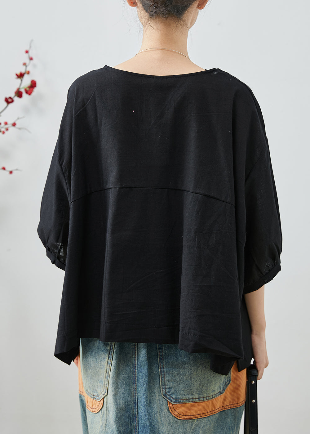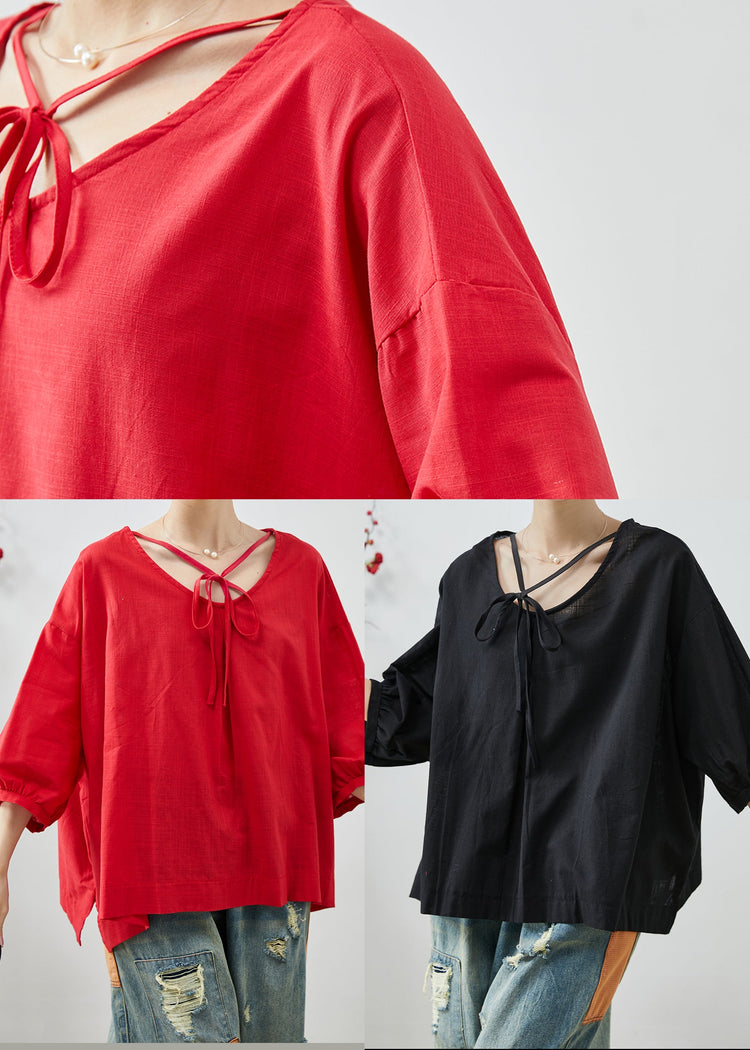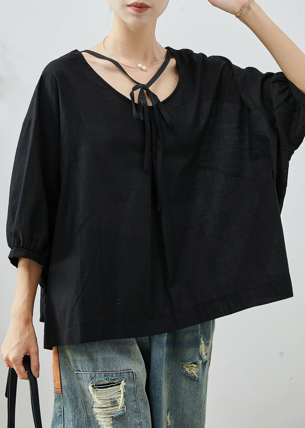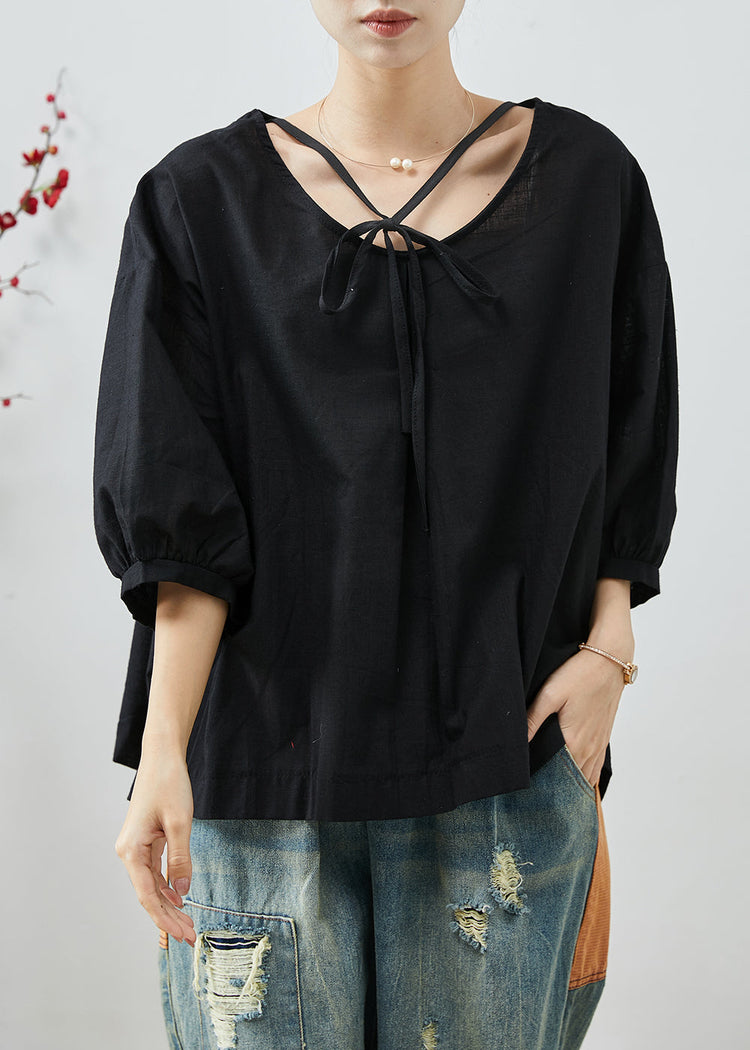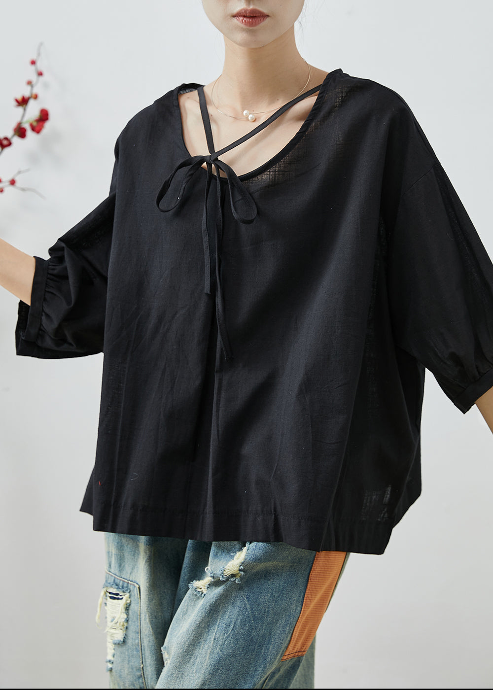 Black Oversized Cotton Shirt Top Lace Up Summer