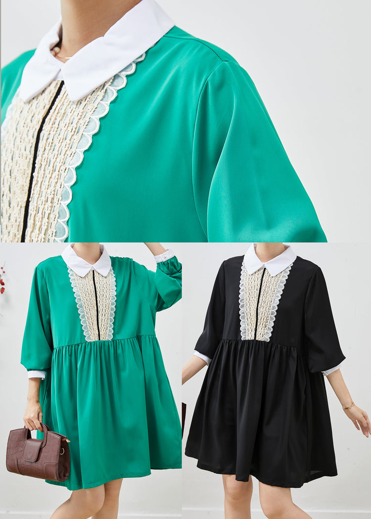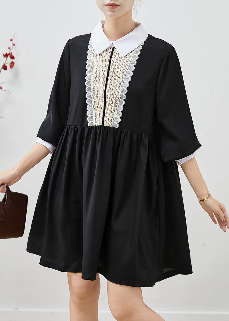 Black Patchwork Chiffon Day Dress Peter Pan Collar Summer