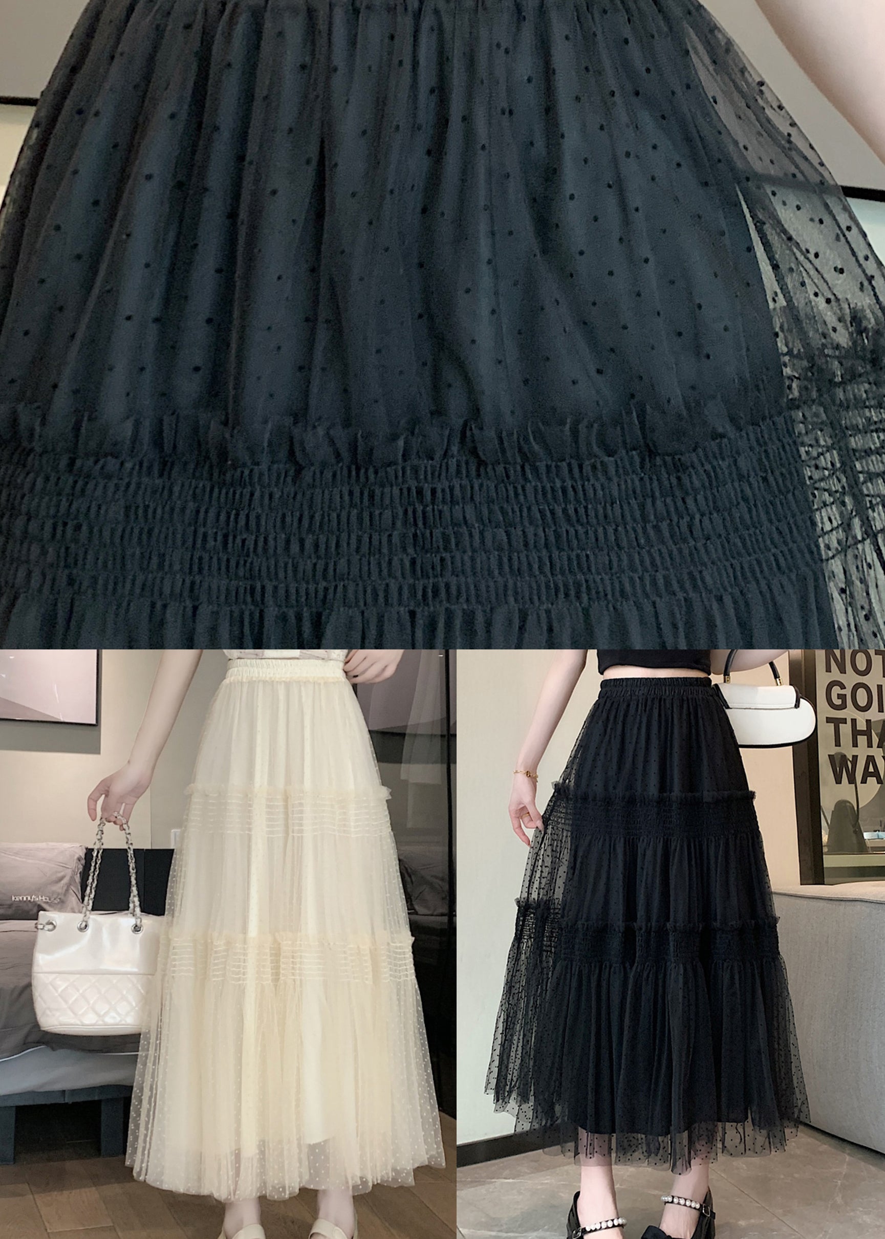 Black Patchwork Italian Tulle Skirt Ruffled Elastic Waist Spring