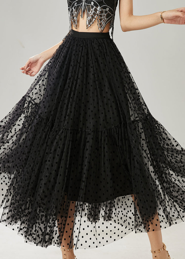 Black Patchwork Tulle Skirts Elastic Waist Dot Summer