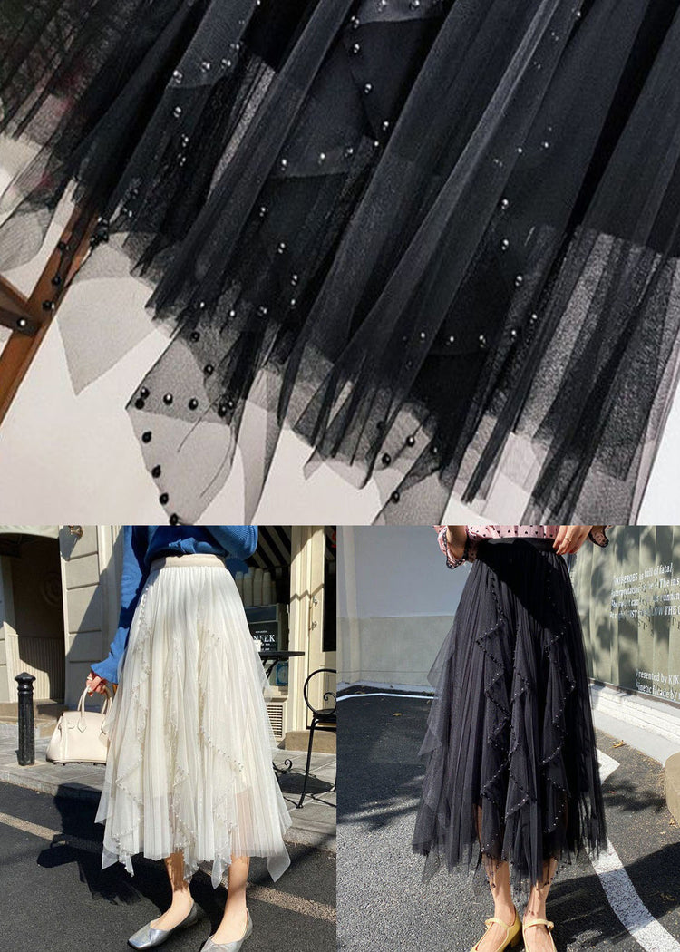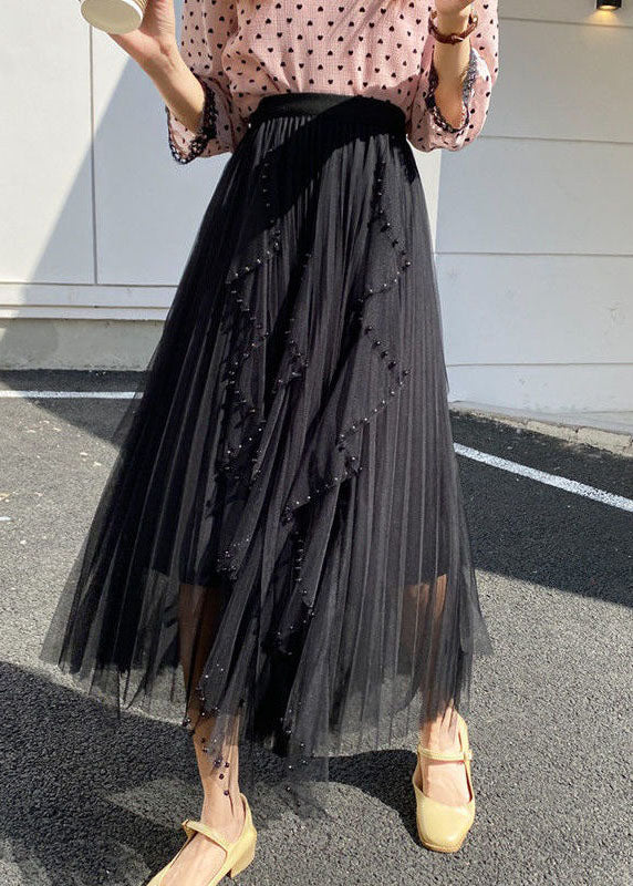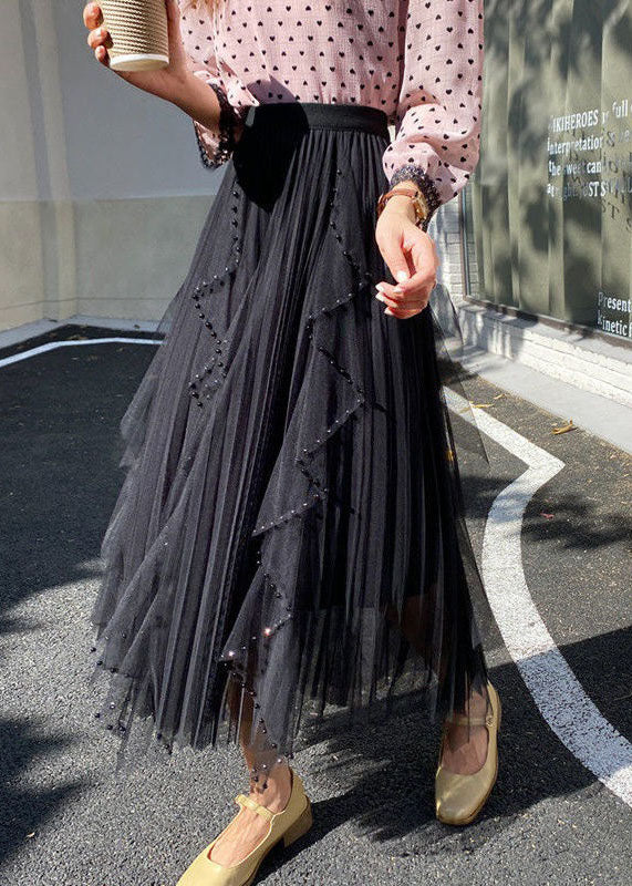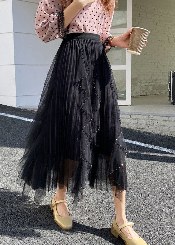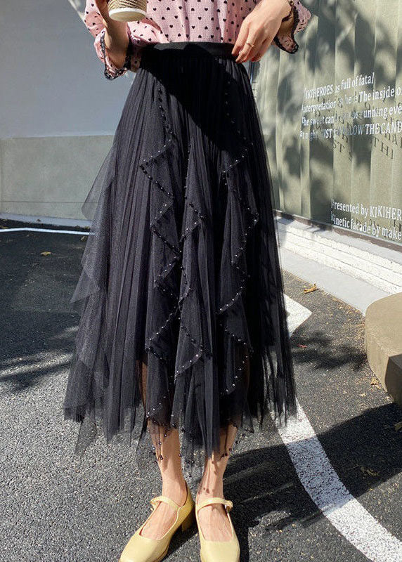 Black Patchwork Tulle Skirts Nail Bead Asymmetrical Spring