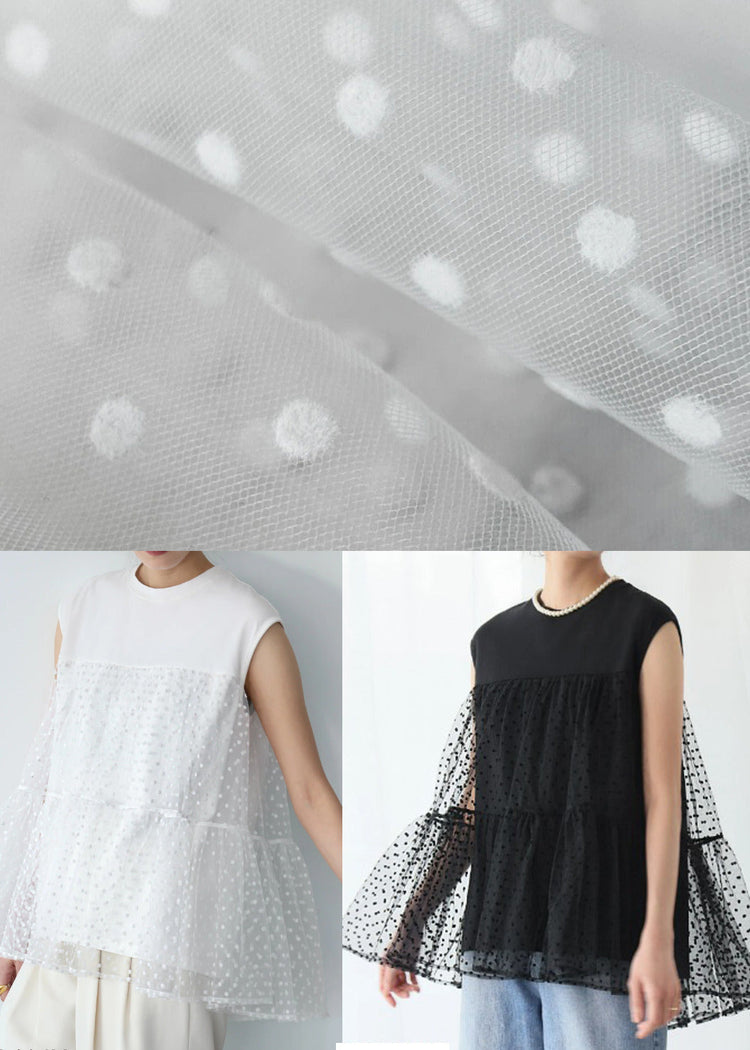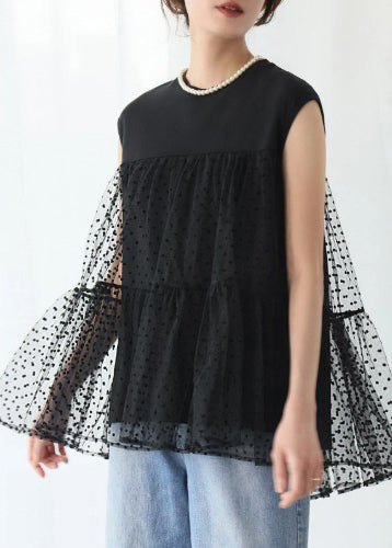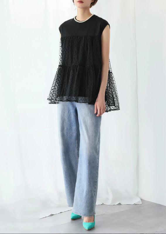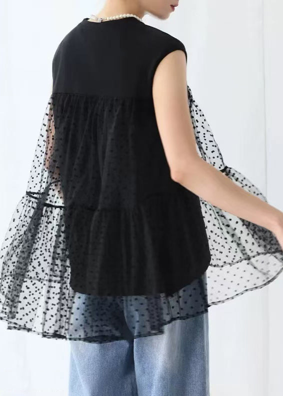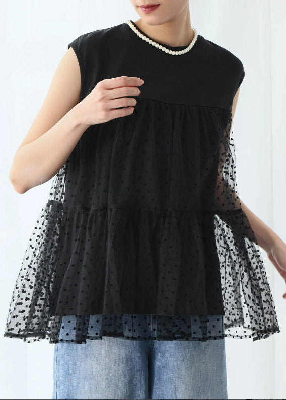 Black Patchwork Tulle Tank Embroideried Sleeveless
