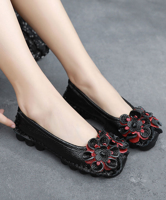 Black Penny Loafers Cowhide Leather Beautiful Floral Penny Loafers