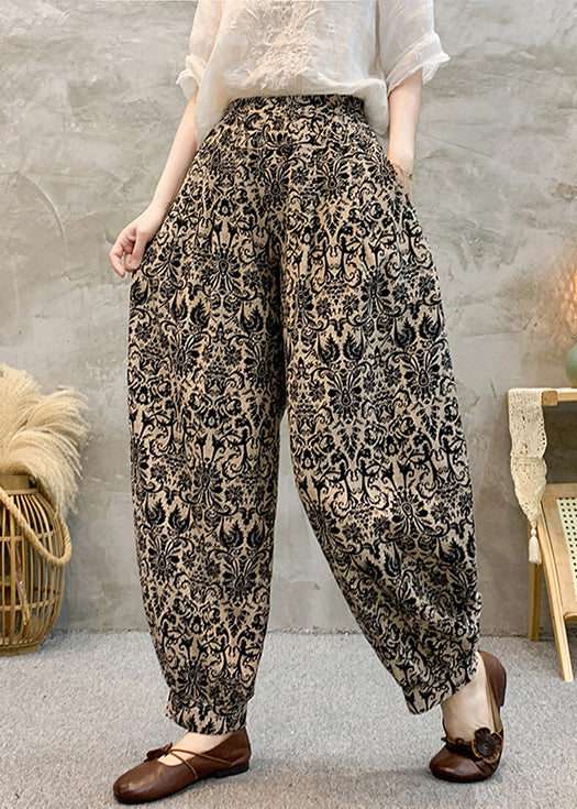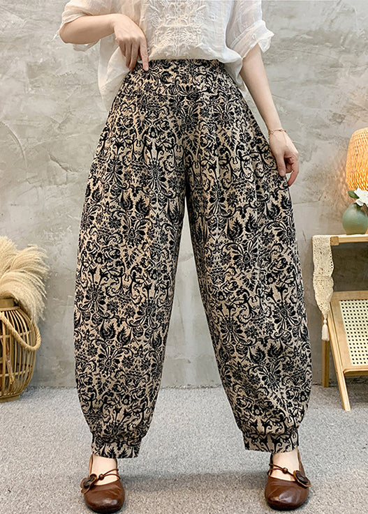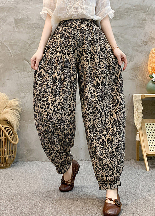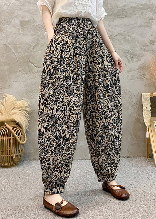 Black Pockets Cotton Summer Harem Pants Elastic Waist