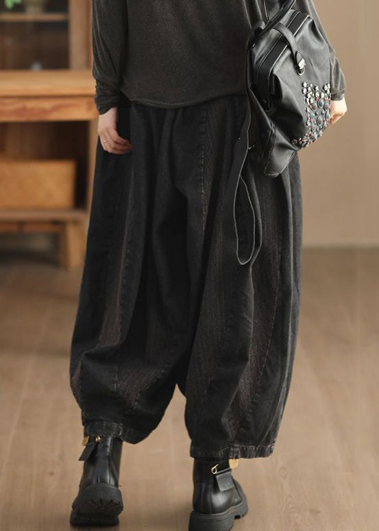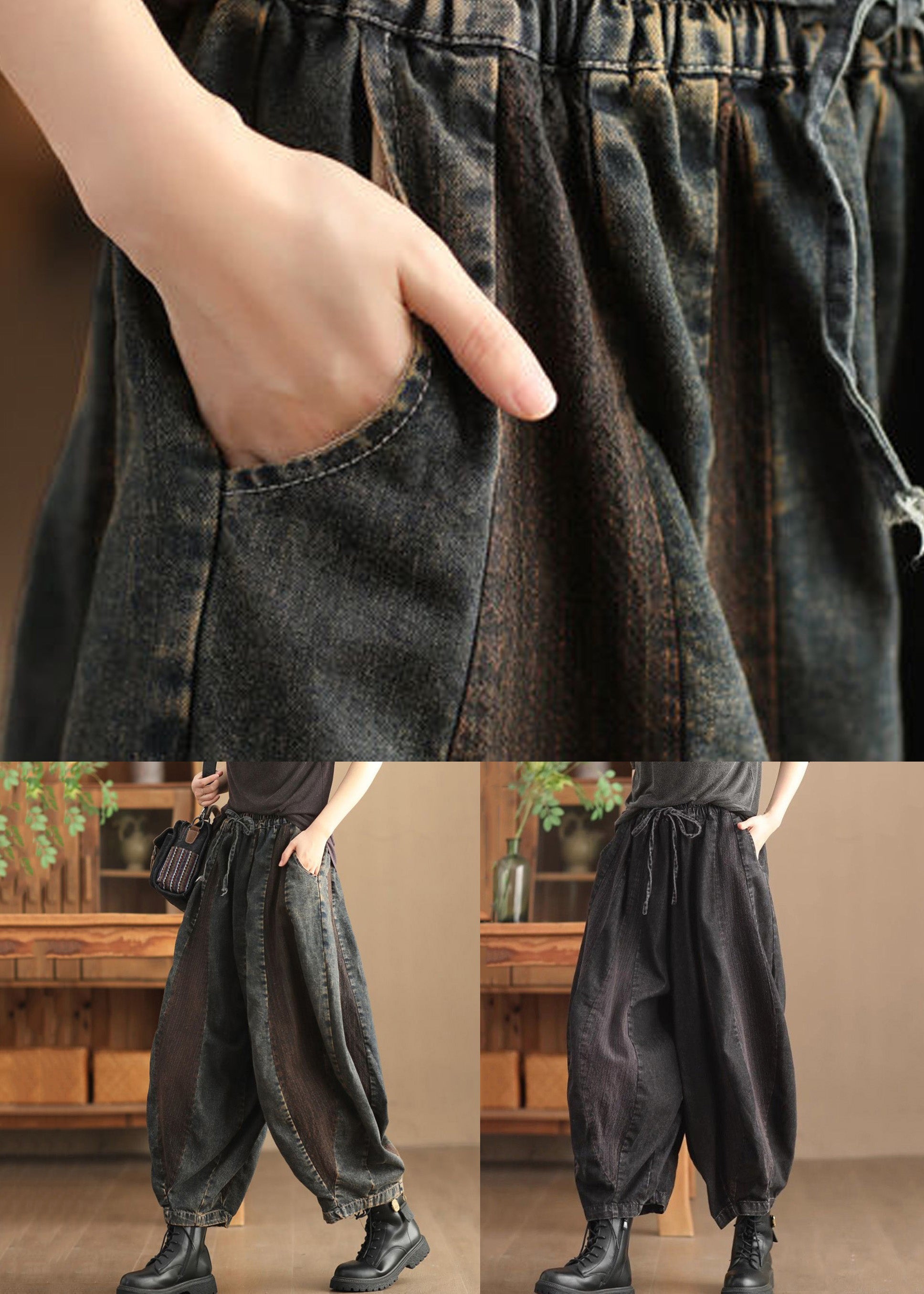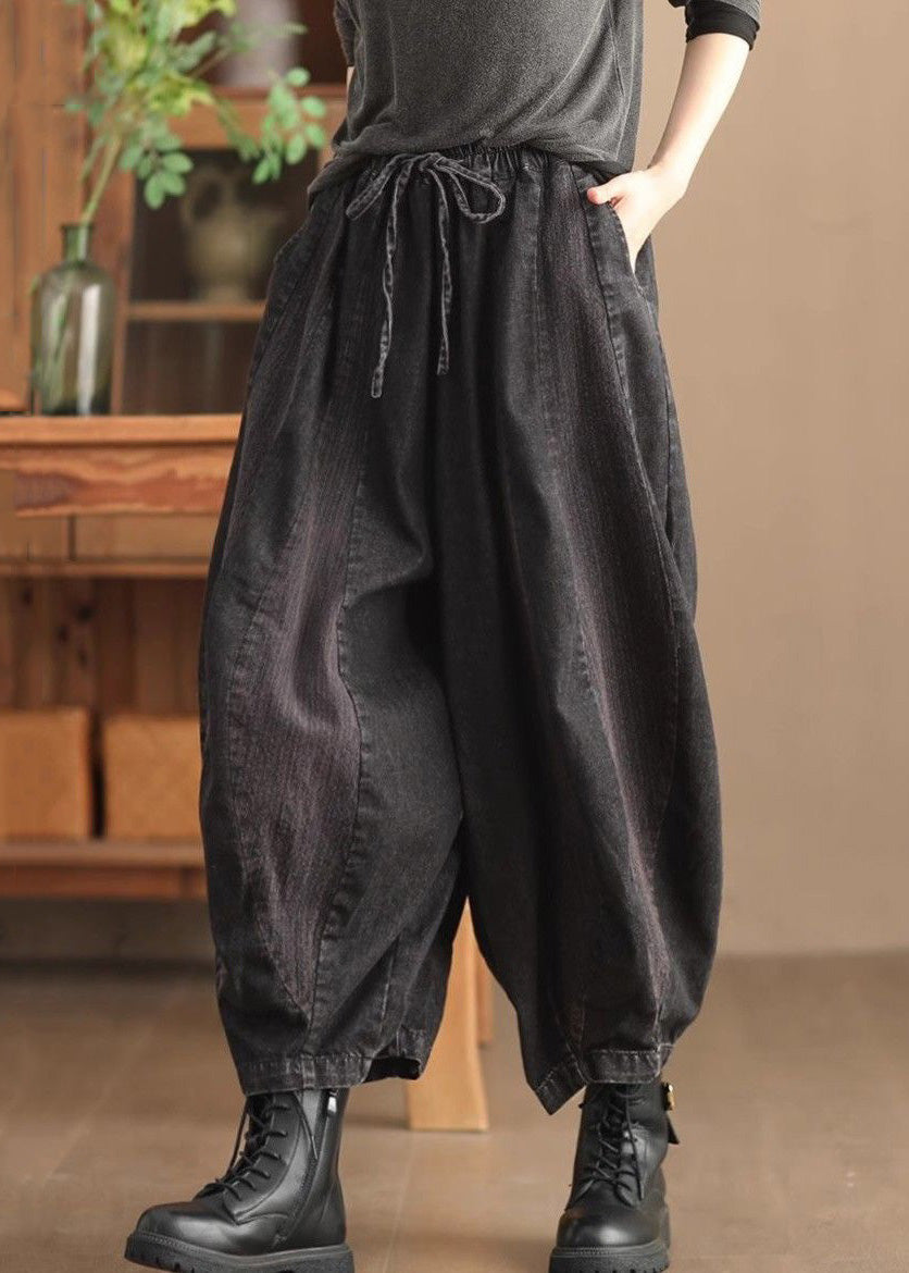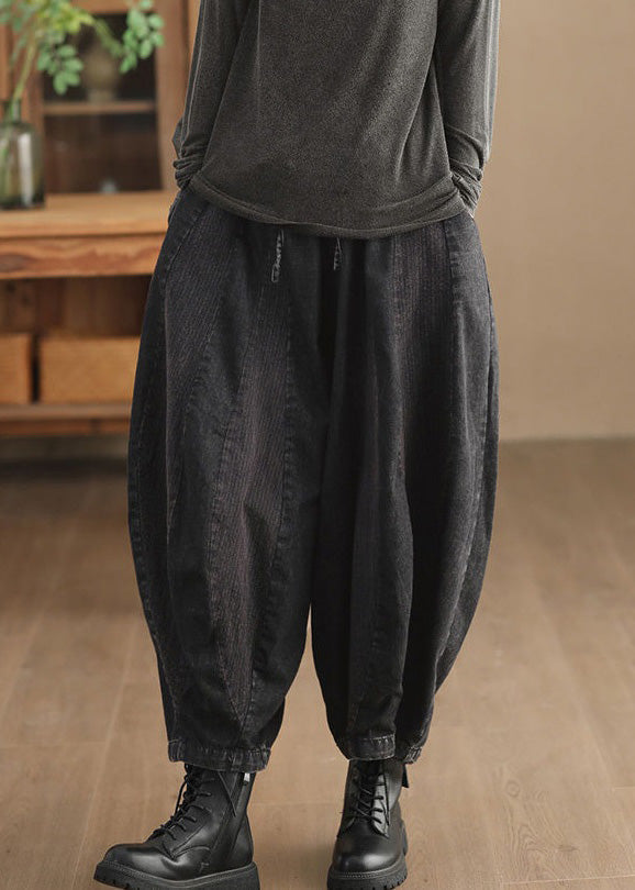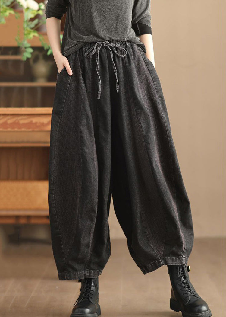 Black Pockets Lace Up Patchwork Harem Pants High Waist