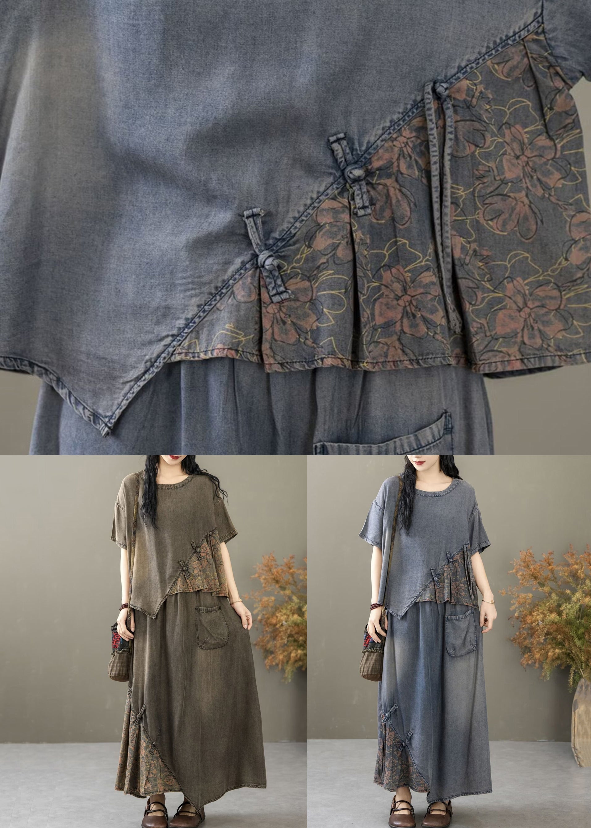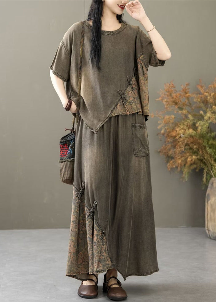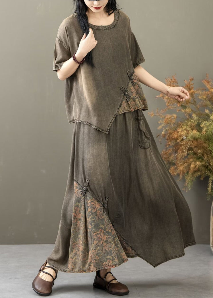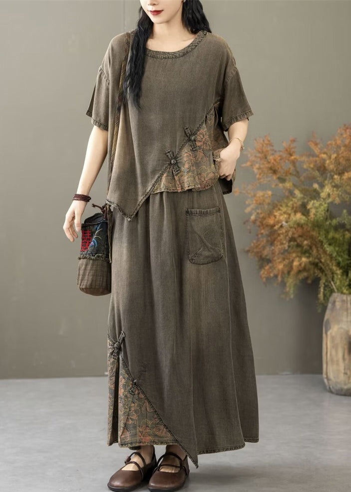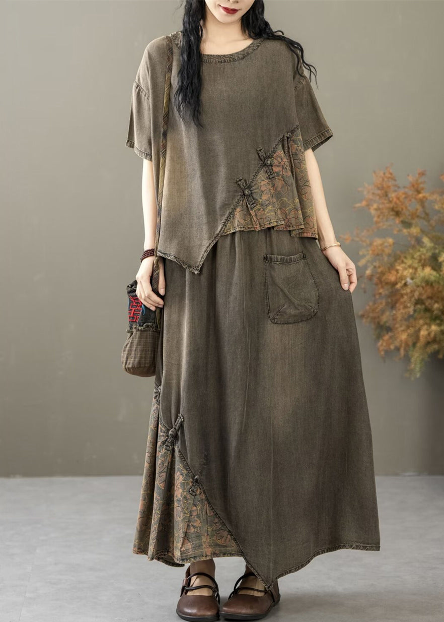 Black Pockets Patchwork Two Pieces Set O Neck Summer