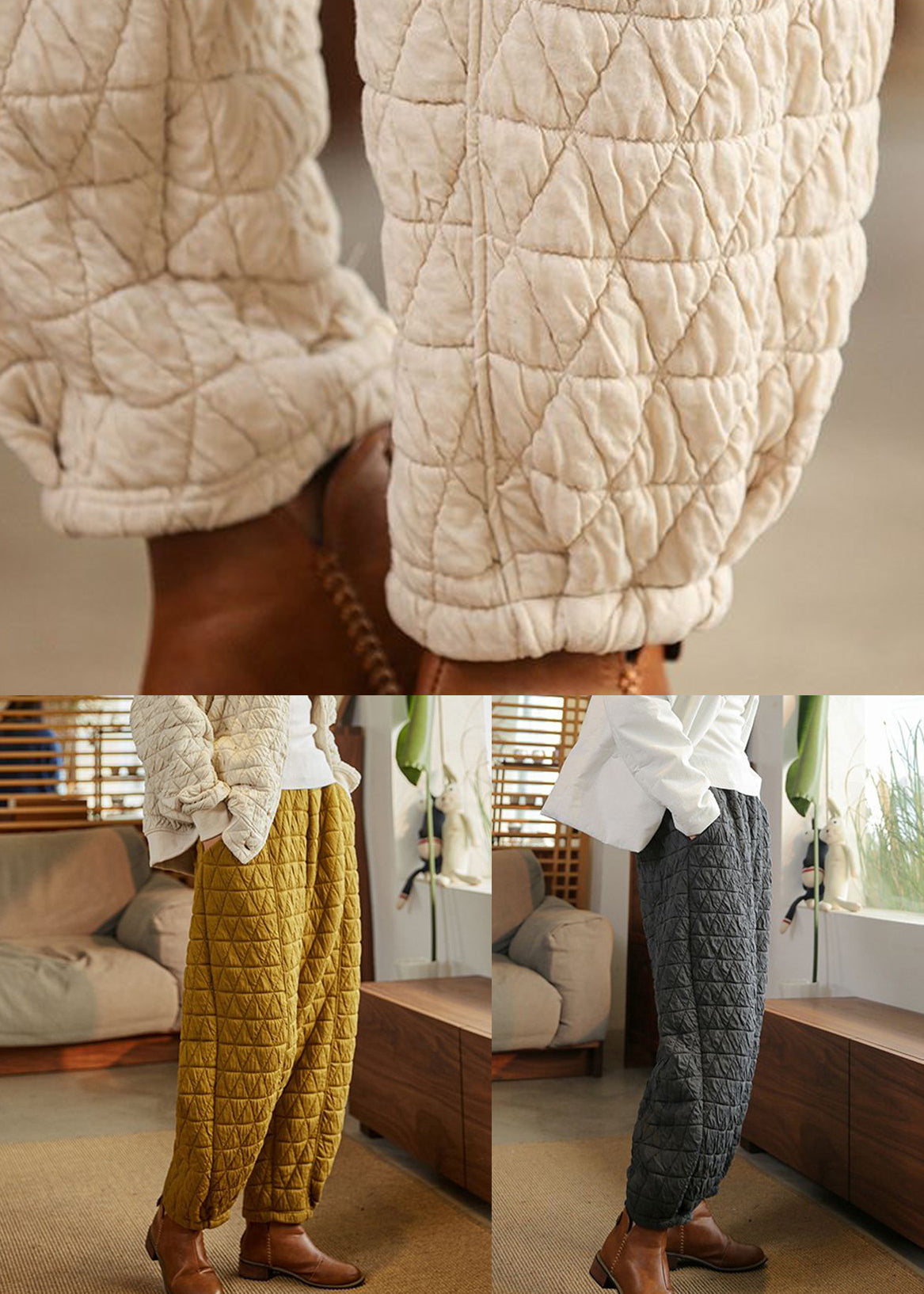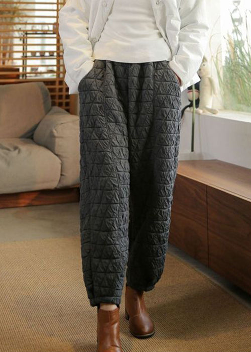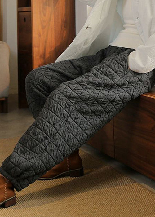 Black Pockets Thick Cotton Filled High Waist Beam Pants