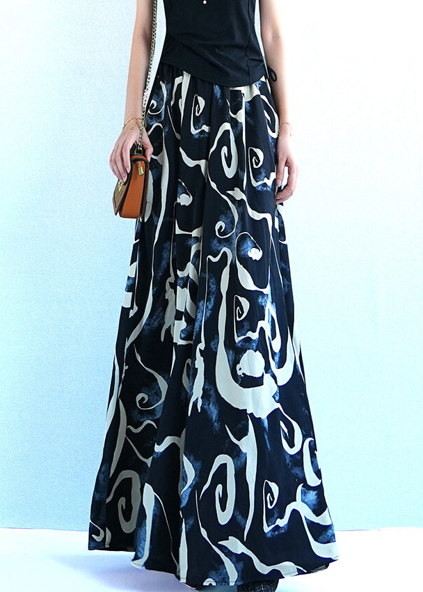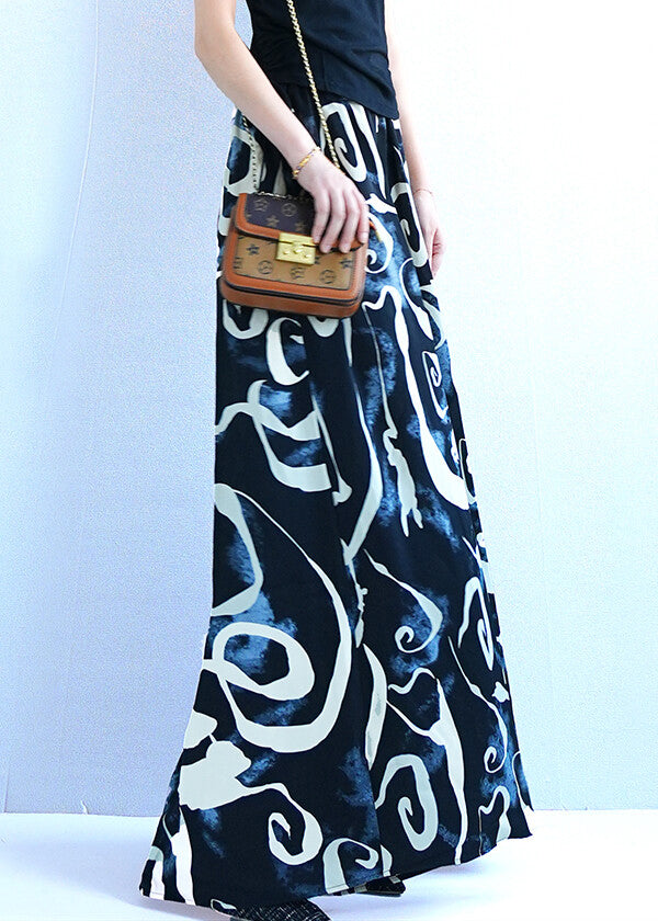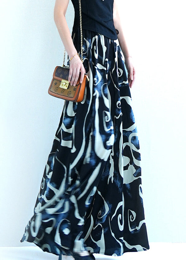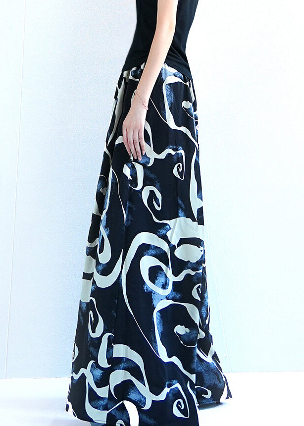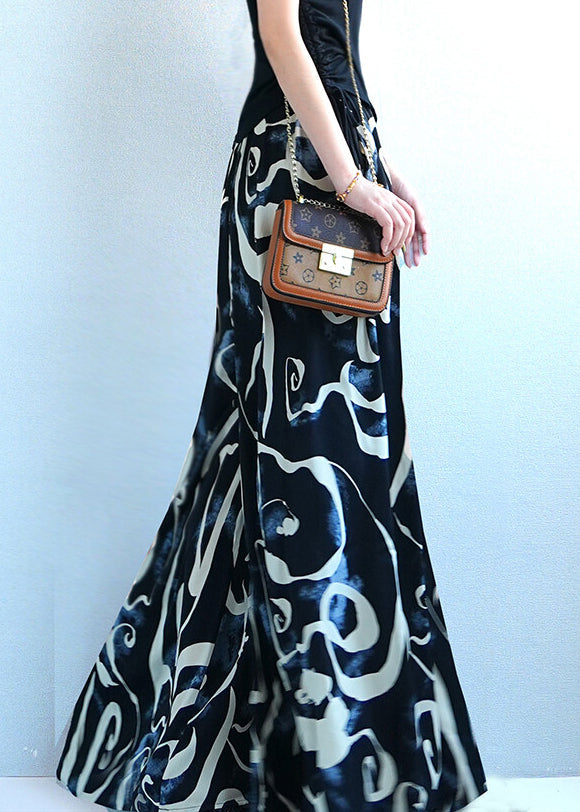 Black Print Oversized Silk Summer Wide Leg Pants Elastic Waist