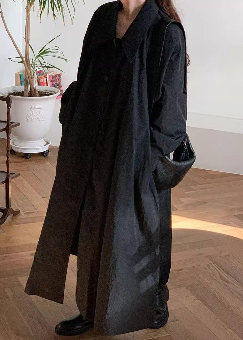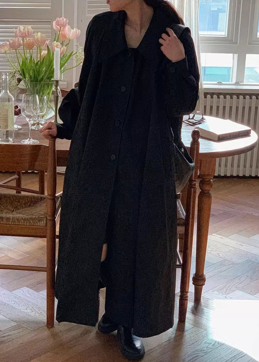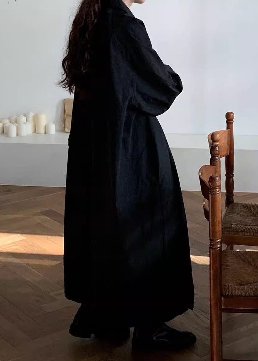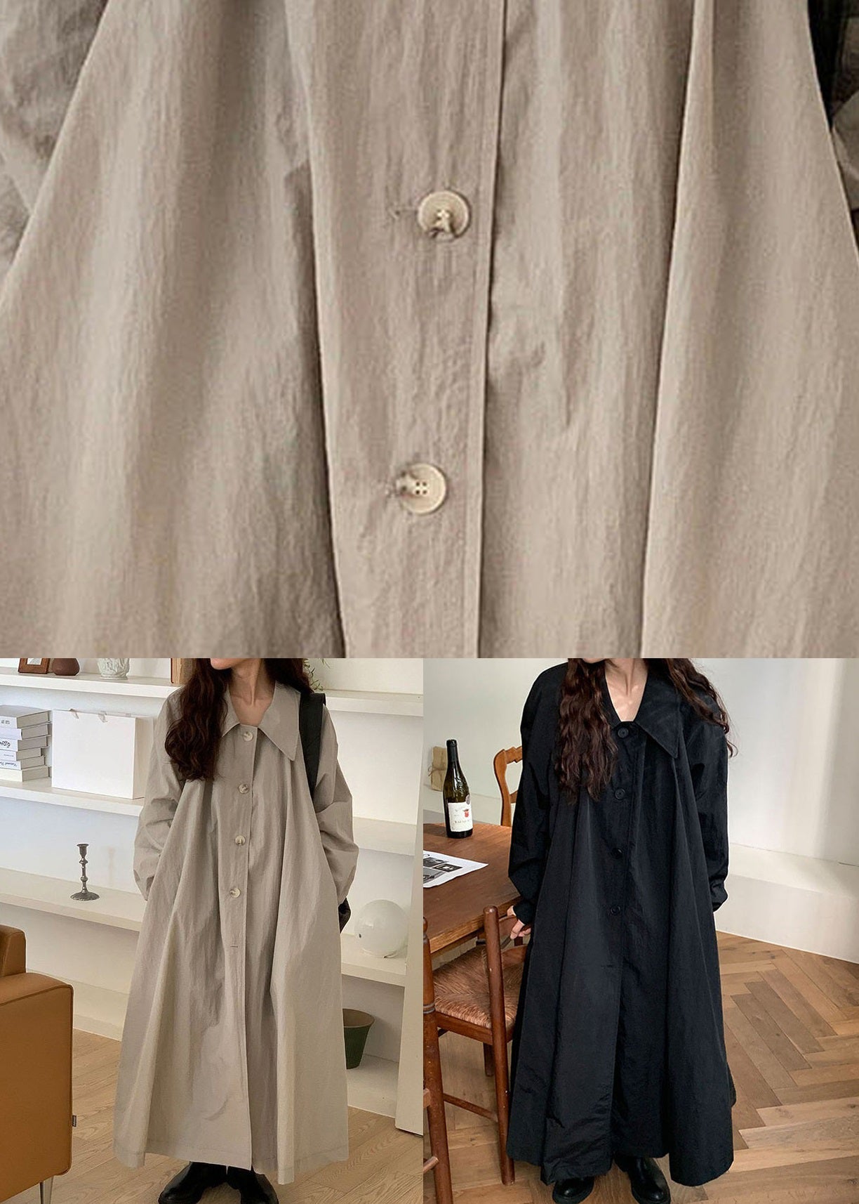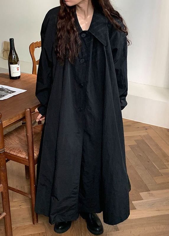 Black Solid Cotton Blouse Dress Peter Pan Collar Long Sleeve
