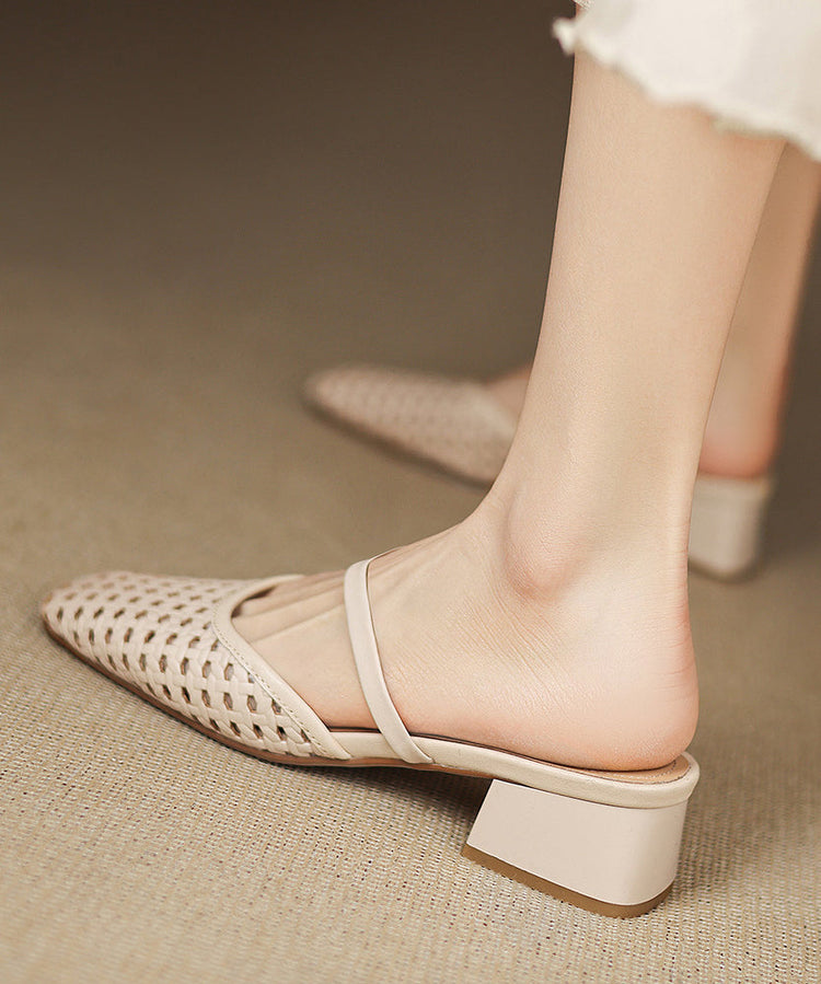 Black Splicing Boutique Chunky Slide Sandals Hollow Out