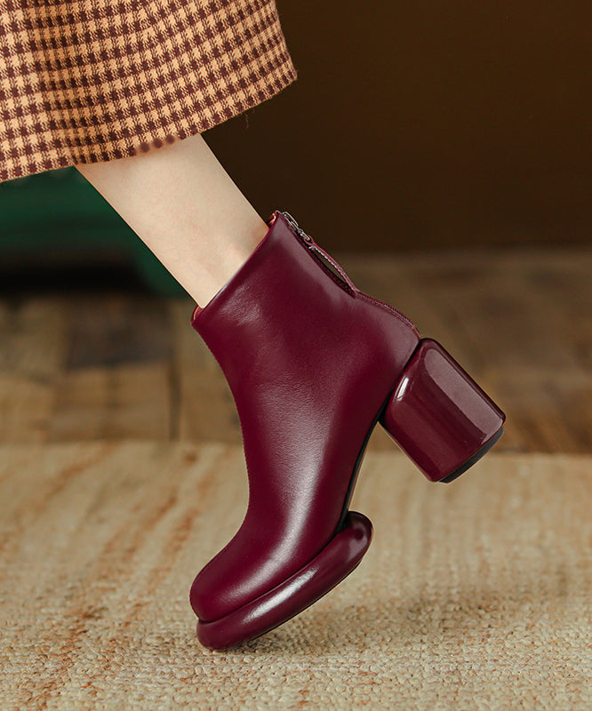 Black Splicing Stylish Cowhide Leather Chunky Boots