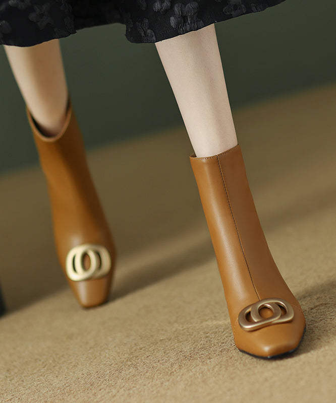 Black Zippered Classy Splicing Cowhide Leather High Heel Boots
