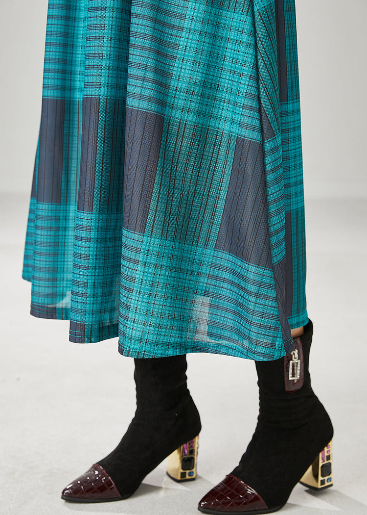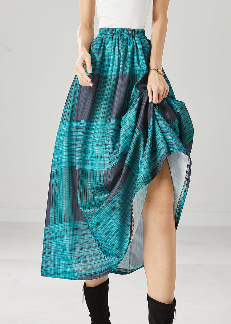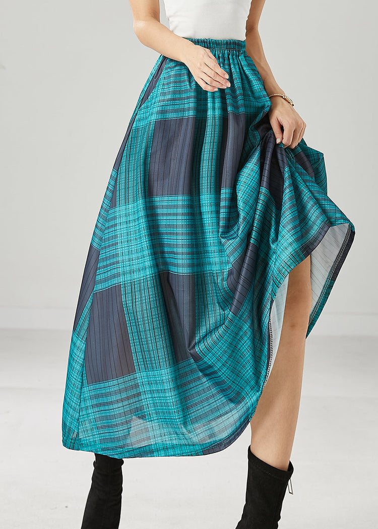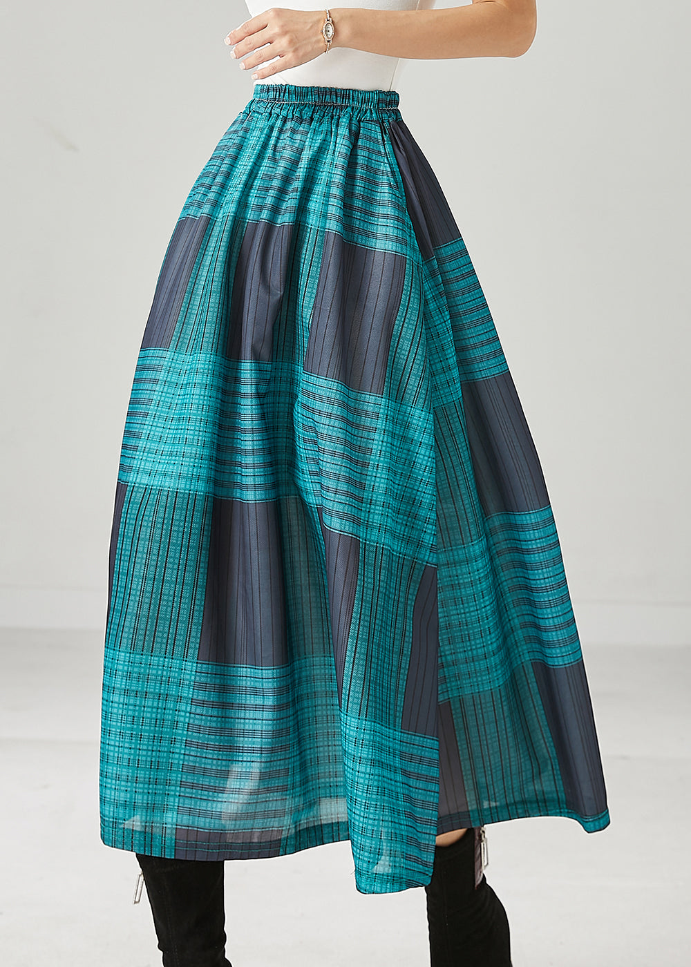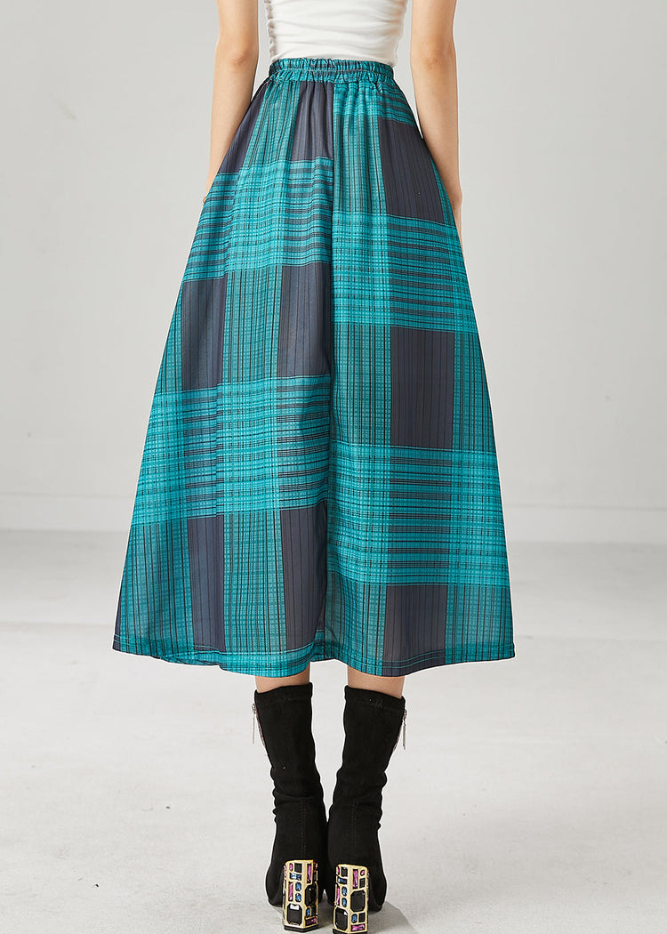 Blackish Green Plaid Cotton A Line Skirt Spring