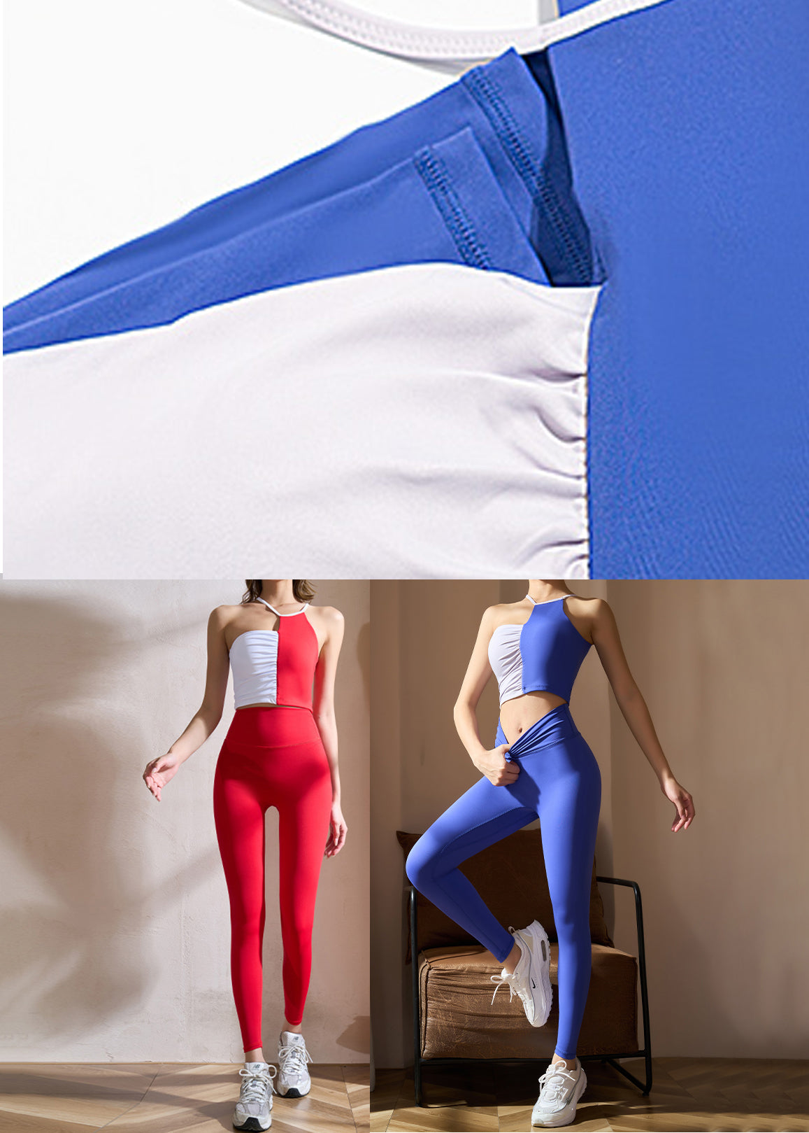 Blue Cold Shoulder Sports Patchwork Bra And Leggings Set Suit