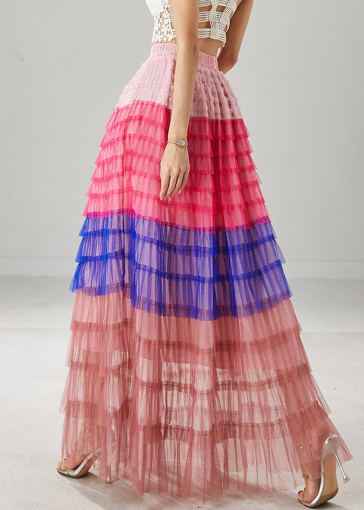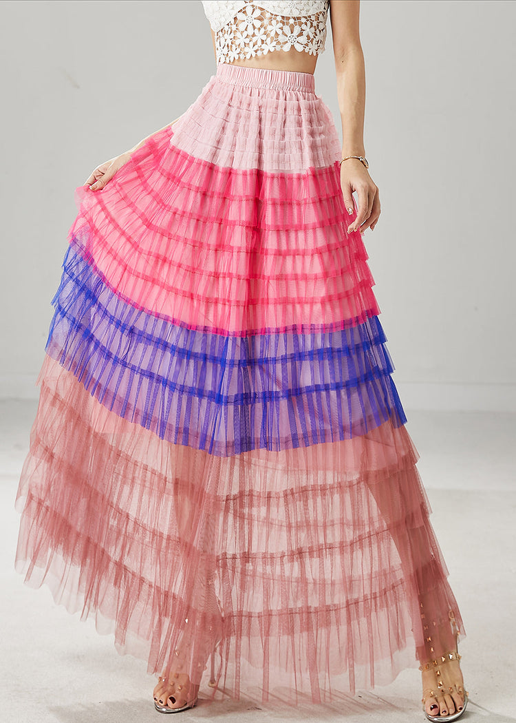 Blue Patchwork Tulle Beach Skirts Layered Ruffled Summer