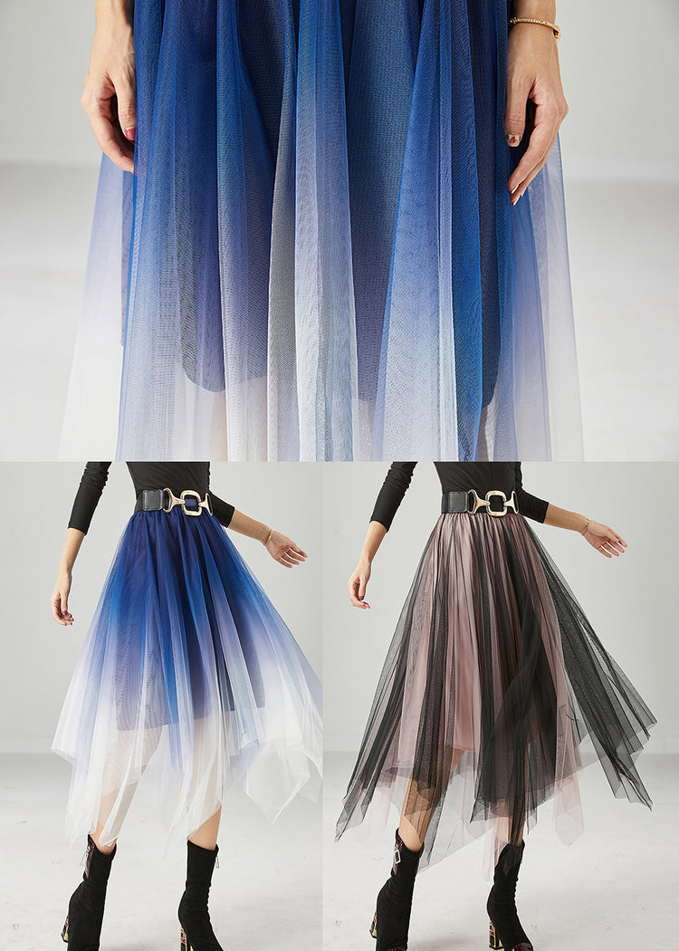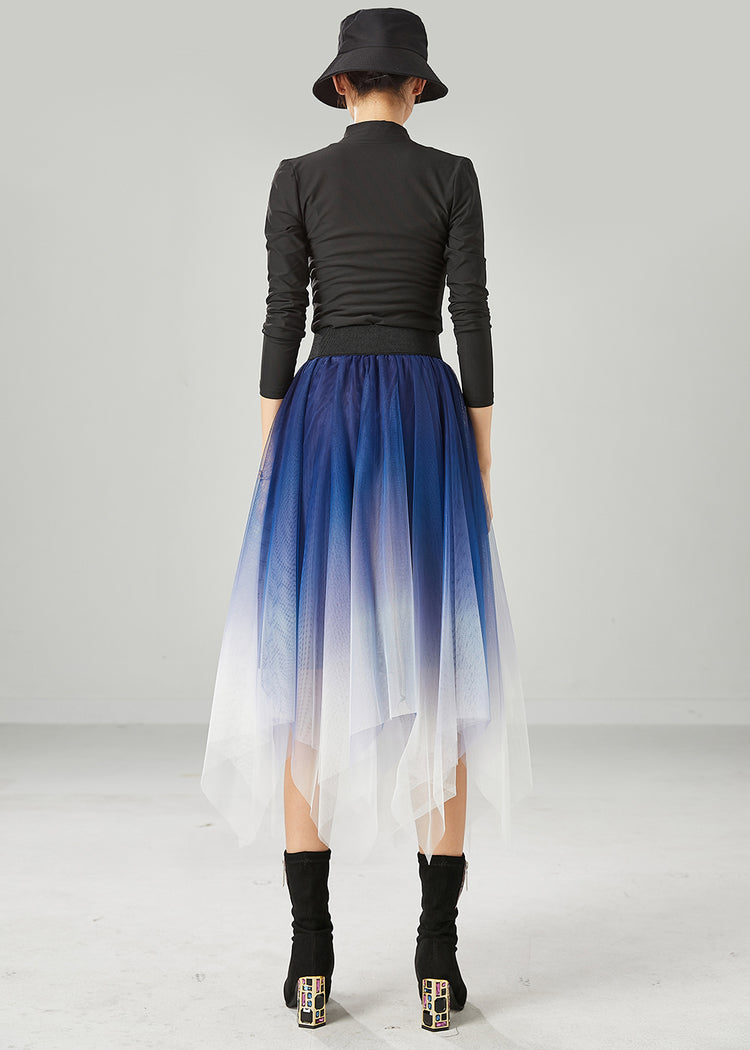 Blue Tulle Vacation Skirts Asymmetrical Gradient Color Summer